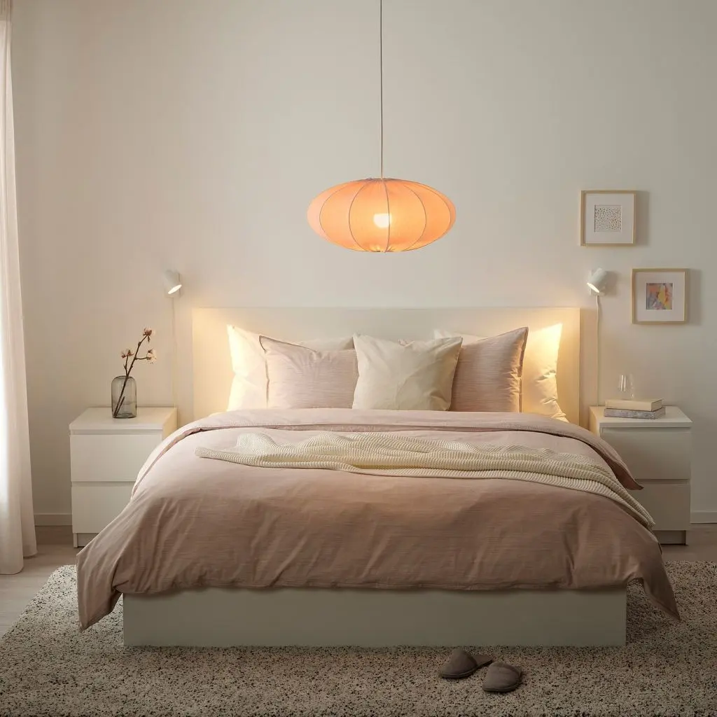 Удобно забрать домой: абажур продается в плоской упаковке.К шнуру-подвесу прилагается специальный фиксатор, позволяющий регулировать длину шнура таким образом, чтобы светильник располагался на удобной для вас высоте.Ткань абажура легко снять и постирать в машине.Текстильный абажур, мягко рассеивающий свет, создает в комнате уютную и располагающую атмосферу.Лампочка продается отдельно. ИКЕА рекомендует светодиод E27.Постоянное подключение к электросети.Можно подвесить на потолочный крючок.Чтобы абажур висел ровно, регулируйте шнур-подвес/шнур.