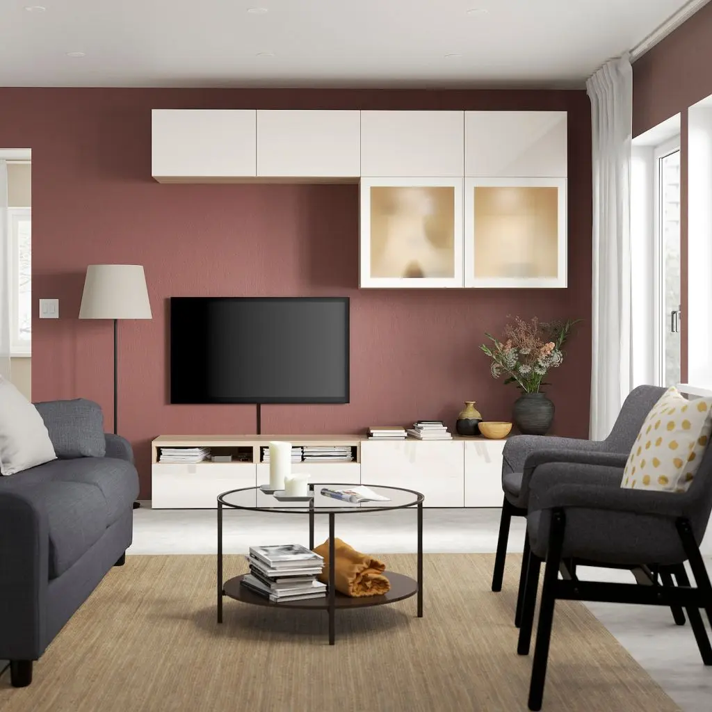 Благодаря нескольким отверстиям на задней панели тумбы под ТВ провода от телевизора и других устройств всегда будут под рукой, но не на виду.Специальное отверстие в верхней панели обеспечит удобное и компактное размещение проводов.Благодаря интегрированному нажимному механизму ящики и дверцы открываются легким нажатием.Ящики со встроенным нажимным механизмом открываются легким нажатием.Настенные шкафчики позволяют эффективно использовать пространство над телевизором.Ящики обеспечат более упорядоченное хранение ваших вещей. А полки за дверцами предоставят еще больше места.Съемные полки позволяют регулировать пространство.Организуйте и оптимизируйте систему для хранения БЕСТО, используя подходящие коробки и вставки.Максимальная нагрузка на закрепленный на стене каркас зависит от материала стены.Для разных стен требуются различные крепежные приспособления. Подберите подходящие для ваших стен шурупы, дюбели, саморезы и т. п. (не прилагаются).Эту мебель необходимо крепить к стене с помощью прилагаемого стенного крепежа.Для функционирования нажимного механизма необходимо пространство между каркасом и фронтальной панелью ящика, чтобы ящик открывался нажатием. Небольшой зазор необходим для обеспечения этой функции и не является недостатком товара.Чтобы создать единый интерьер во всем доме, фасады СЕЛЬСВИКЕН можно комбинировать с подходящими дверями ФАРДАЛЬ для гардероба ПАКС.