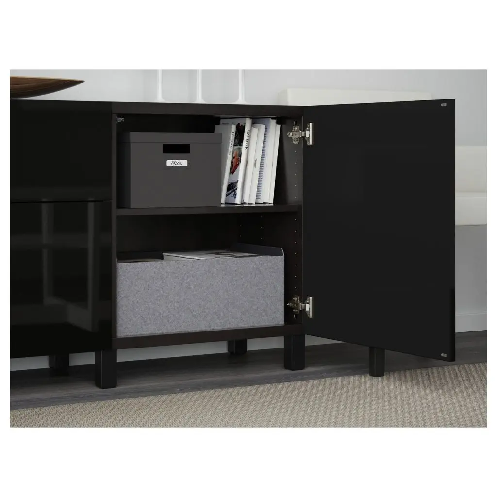 Конструкция петель позволяет отрегулировать и выровнять дверцу по вертикали и по горизонтали. Ящики со встроенным нажимным механизмом открываются легким нажатием.Съемные полки позволяют регулировать пространство.Два ящика и полки за дверцами обеспечат достаточно места для хранения.Организуйте и оптимизируйте систему для хранения БЕСТО, используя подходящие коробки и вставки.Эта комбинация состоит из нескольких частей. Используйте верхнюю панель БЕСТО, чтобы закрыть соединения между каркасами. Продается отдельно.Эту мебель необходимо крепить к стене с помощью прилагаемого стенного крепежа.Для разных стен требуются различные крепежные приспособления. Подберите подходящие для ваших стен шурупы, дюбели, саморезы и т. п. (не прилагаются).Для функционирования нажимного механизма необходимо пространство между каркасом и фронтальной панелью ящика, чтобы ящик открывался нажатием. Небольшой зазор необходим для обеспечения этой функции и не является недостатком товара.