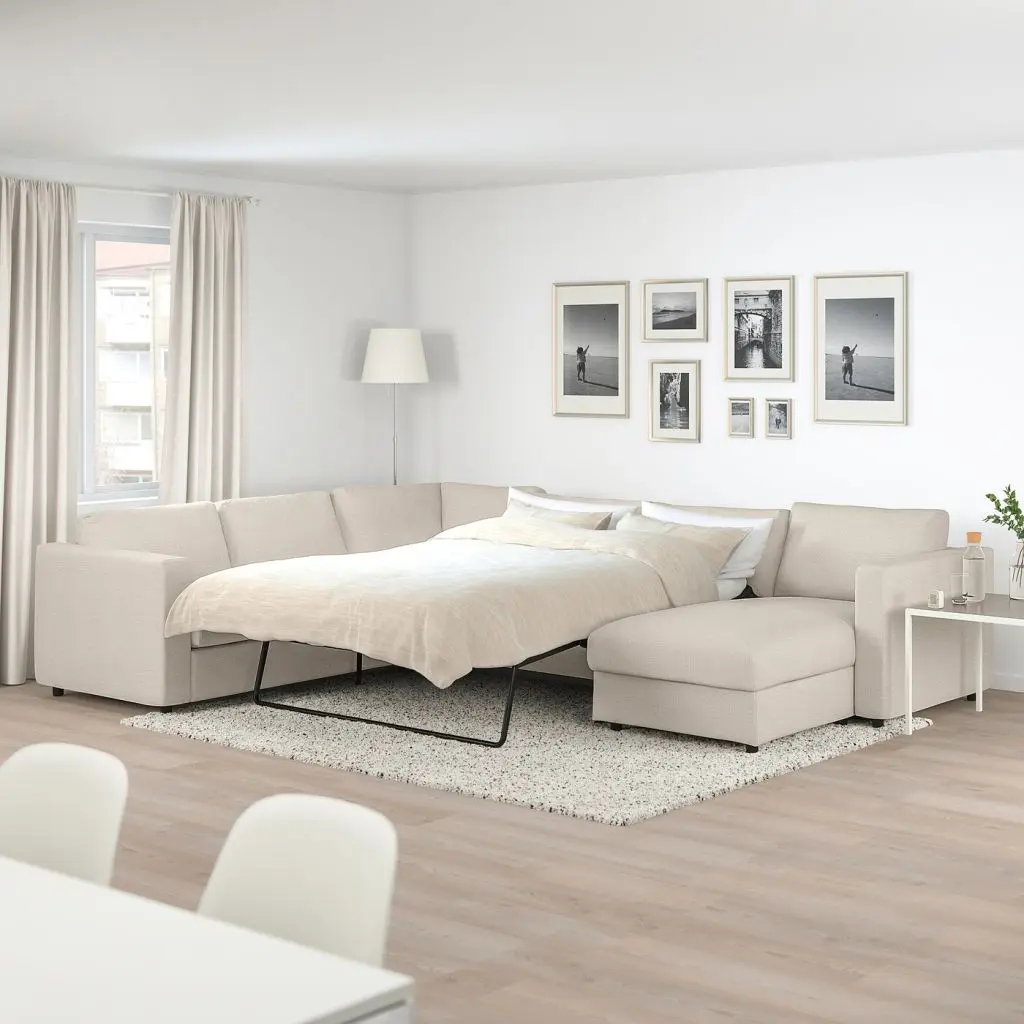 Углов 5-мест диван-кровать+козетка, Гуннаред бежевый