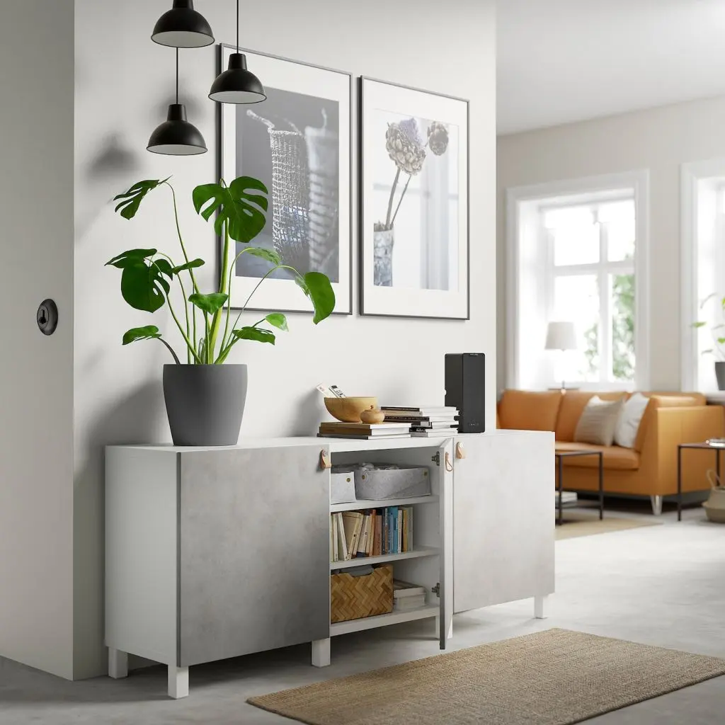 Самое время заняться организацией хранения! Просторный буфет подходит для хранения вещей, а его верхнюю поверхность можно использовать для любимых аксессуаров или хранения посуды во время еды.