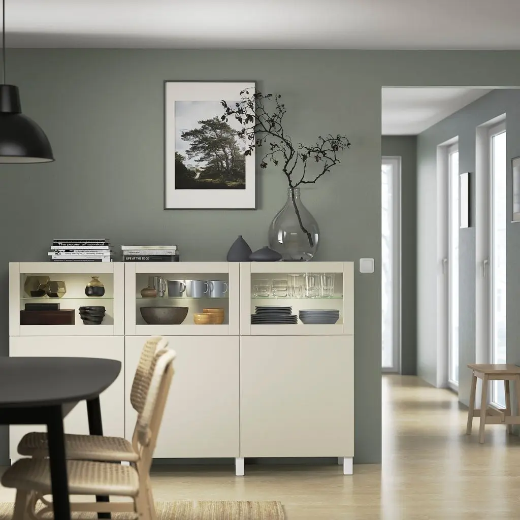 Стеклянные дверцы позволяют продемонстрировать содержимое шкафа, защищая его от пыли.Дверцы открываются легким нажатием и закрываются плавно и бесшумно благодаря петлям с нажимным механизмом и функции плавного закрывания.Съемные полки позволяют регулировать пространство.Вы можете выбрать нажимной механизм или устройство для плавного закрывания.Конструкция петель позволяет отрегулировать и выровнять дверцу по вертикали и по горизонтали. Организуйте и оптимизируйте систему для хранения БЕСТО, используя подходящие коробки и вставки.Эта комбинация состоит из нескольких частей. Используйте верхнюю панель БЕСТО, чтобы закрыть соединения между каркасами. Продается отдельно.Если вы выберете функцию плавного закрывания, рекомендуем дополнить фасады ручками, чтобы открывать ящики/шкафы было удобнее.Ручки продаются отдельно.Эту мебель необходимо крепить к стене с помощью прилагаемого стенного крепежа.Будьте осторожны при обращении с закаленным стеклом! Из-за поврежденных краев и царапин на поверхности стекло может внезапно разбиться.