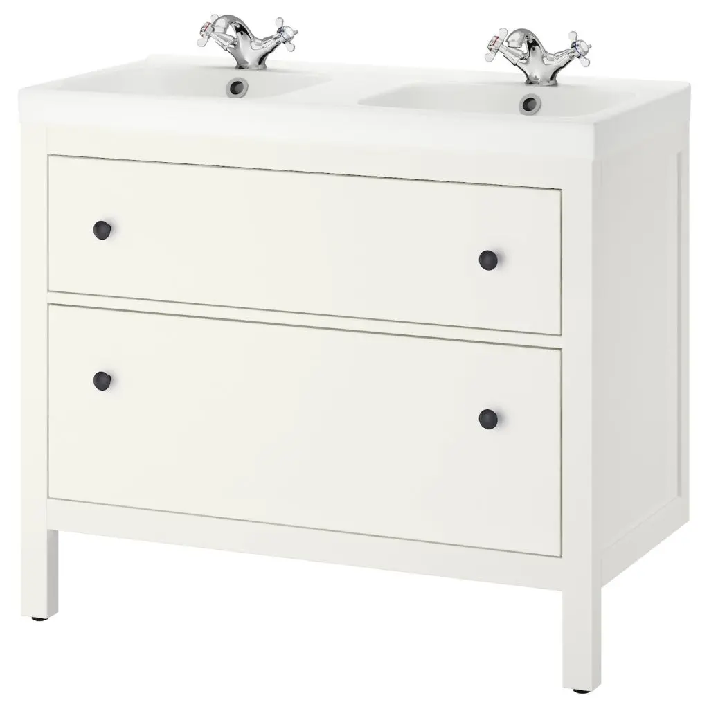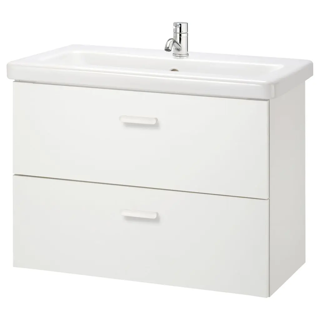 Шкаф под раковину с 2 ящиками, белый/ПИЛКОН смеситель, 84x43x65 см