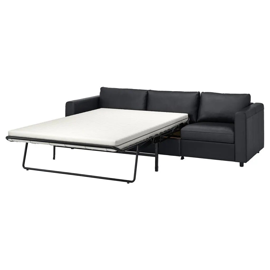Секции дивана можно комбинировать разными способами, создавая спальное место удобного размера и формы. Если вам потребуется диван побольше, вы всегда можете добавить одну или две секции.Вы можете создать свою собственную идеальную комбинацию с помощью планировщика. Собирайте, разбирайте и снова компануйте, пока не найдете лучший вариант.Уберите подушки сиденья и спинки, вытащите подрамник, и ваш диван быстро превратится в просторную, удобную кровать. Идеальное спальное место для вас или ваших гостей.Диван-кровать оснащен матрасом из высокоэластичного пенополиуретана толщиной 12 см. Матрас обеспечивает поддержку тела и гладкую поверхность без стыков.Благодаря съемному чехлу, который можно стирать в машине, матрас легко содержать в чистоте.Подушки можно использовать для поддержки спины, лежа в кровати.Можно дополнить подголовником ВИМЛЕ, чтобы сделать спинку дивана выше и обеспечить комфортную опору для шеи.Для контактных поверхностей использована мягкая, гладкая и прочная кожаная обивка ГРАНН. Обивка БУМСТАД для остальных поверхностей изготовлена из ткани, которая по внешнему виду и на ощупь неотличима от натуральной кожи.Простой уход – достаточно протереть влажной тканью.Бесплатно 10 лет гарантии. Подробнее об условиях гарантии — в гарантийной брошюре.