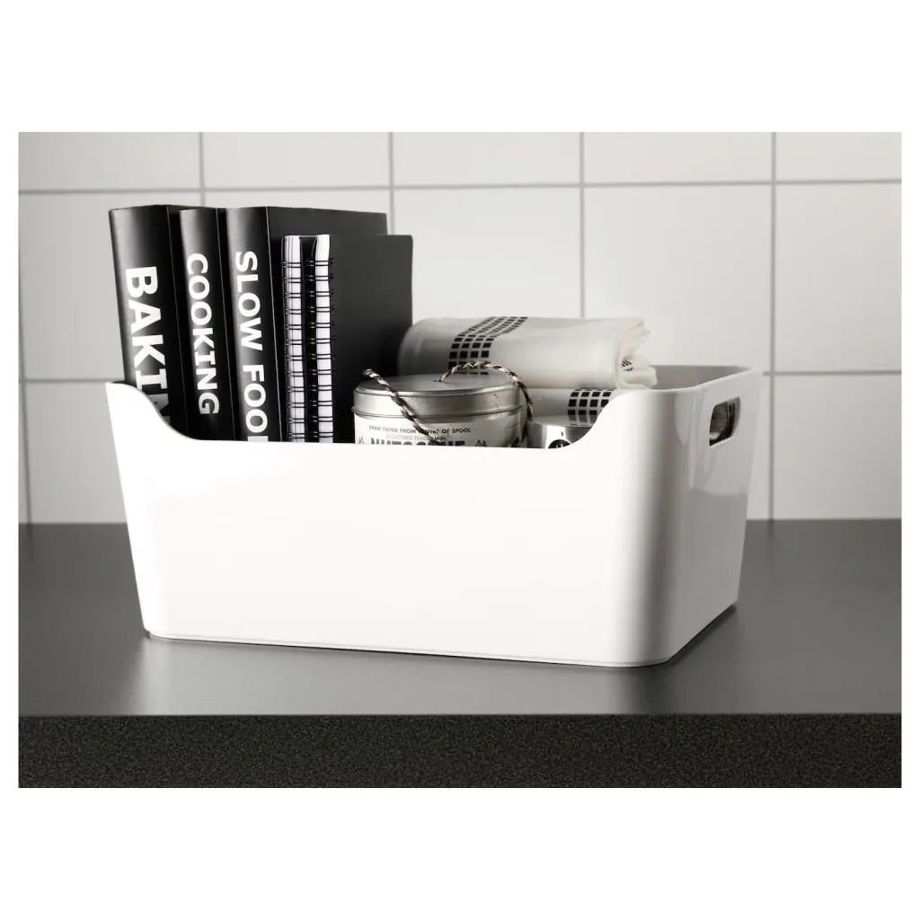 Благодаря прорезным ручкам контейнер удобно переносить и доставать из ящика или с полки.Легко поддерживать в чистоте; закругленные углы.Дизайнер