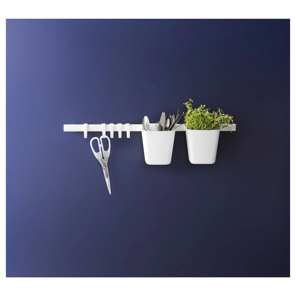 Позволяет освободить место на столешнице, при этом кухонные принадлежности всегда будут под рукой.Легко установить на регулируемый рейлинг, мини-кухню и рейлинг СУННЕРСТА.Также можно использовать в помещениях с высокой влажностью.Подходит для рейлинга, тележки и мини-кухни СУННЕРСТА.Дизайнер