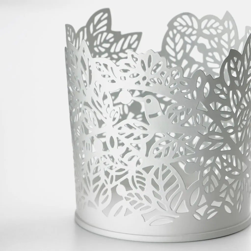 Теплый свет свечи красиво проходит через орнаментальную поверхность подсвечника.Дизайнер