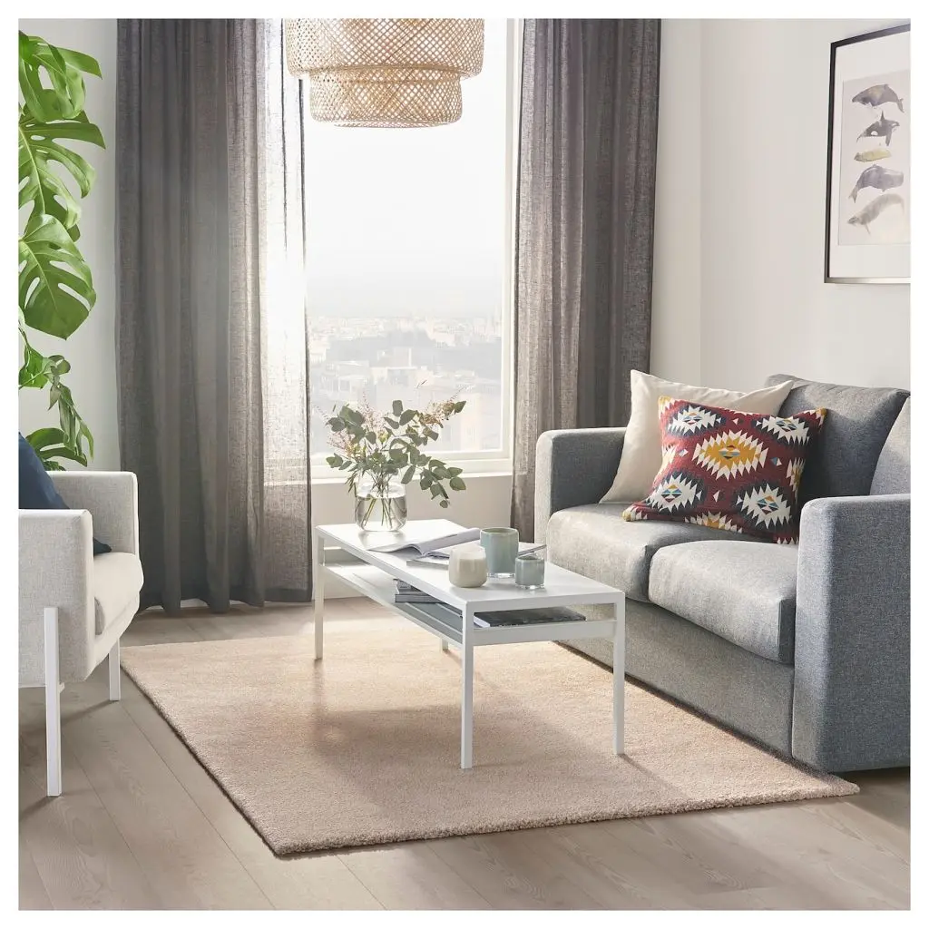 Плотный толстый ворс придает поверхности ковра мягкость и поглощает звуки.Прочный, устойчивый к загрязнениям и простой в уходе ковер изготовлен из синтетического волокна.Благодаря обрезной кромке несколько ковров легко соединить в один большой — стыки не будут заметны.Легкий блеск создает вариации цвета на поверхности.Можно использовать на любом типе напольных покрытий, даже на полах с подогревом.Используйте противоскользящую подстилку СТОП для обеспечения безопасности; подстилку следует класть под ковер.Для этого ковра потребуется 2 противоскользящие подстилки СТОП (67,5×200 см). При необходимости можно подрезать или подогнуть.После снятия упаковки ковер восстановит форму в течение двух дней.Ковер машинной работы.Дизайнер