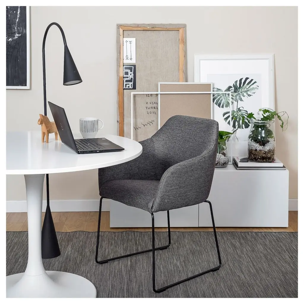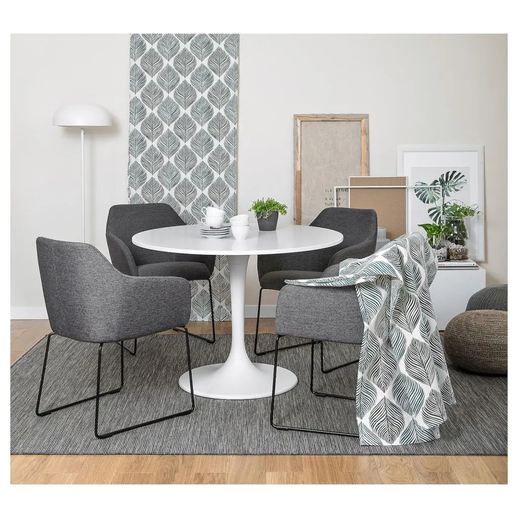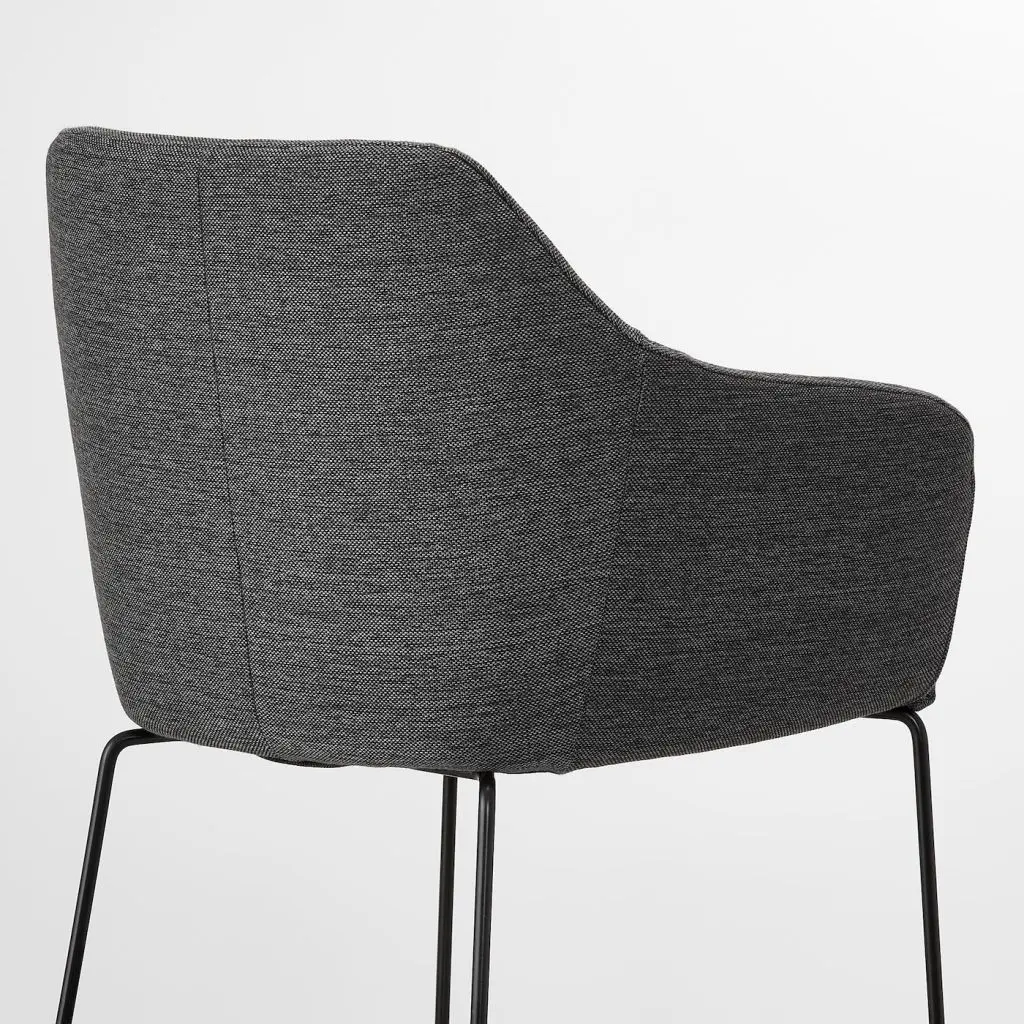 Мягкое сиденье и комфортный наклон спинки позволят вам наслаждаться неспешным обедом.Подлокотники и закругленная спинка обеспечивают особый комфорт.Подлокотники достаточно длинные, чтобы обеспечить вам оптимальный комфорт, и достаточно короткие, чтобы вы могли сидеть вплотную к столу за едой.Закругленная спинка обеспечивает дополнительный комфорт.Прочный и устойчивый каркас из стали с порошковым покрытием.Стул можно задвинуть под стол, так он будет занимать меньше места, когда не используется.Использование наклеек на мебельные ножки ФИКСА предотвратит повреждение поверхности пола.Данный стул протестирован и одобрен для бытового использования и соответствует требованиям к безопасности, долговечности и устойчивости, установленным стандартами EN 12520 и EN 1022.Дизайнер