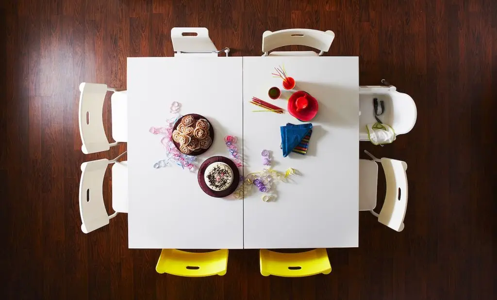 Меламиновая поверхность проста в уходе, устойчива к появлению пятен и царапин — идеальный выбор для семей с детьми.Мы все проверили! Поверхность столешницы выдержит воздействие жидкостей и тепла, а также будет устойчива к пятнам, жиру, царапинам и ударам.Для обеспечения устойчивости через две недели после сборки еще раз затяните шурупы. В дальнейшем подтягивайте шурупы при необходимости.На 4 человека.Дизайнер