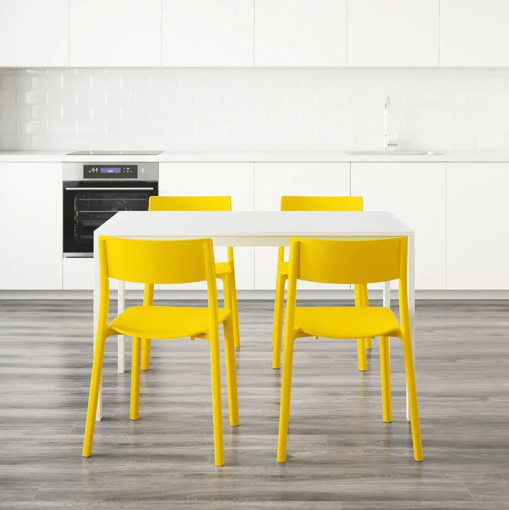Меламиновая столешница устойчива к воздействию влаги и повреждениям и проста в уходе.Мы все проверили! Поверхность столешницы выдержит воздействие жидкостей и тепла, а также будет устойчива к пятнам, жиру, царапинам и ударам.На 4 персоны.На 4 человека.Вы можете снять защитные накладки, если вы не планируете штабелировать стулья.Дизайнер