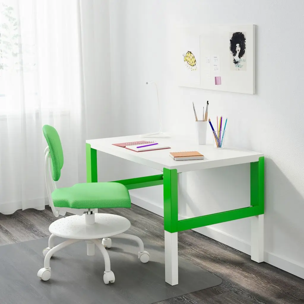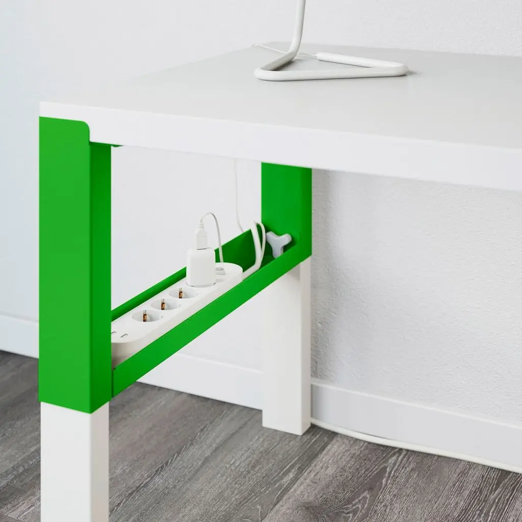 Стол растет вместе с ребенком, так как столешницу можно установить на трех уровнях высоты.Стол легко установить на нужной высоте – 59, 66 или 72 см – с помощью специальных фиксаторов на ножках.Провода и удлинители можно расположить в специальном держателе между передними и задними ножками.Чтобы ребенку было проще поддерживать порядок среди ручек, тетрадей и книг, установите на письменный стол дополнительный модуль или настольную полку серии ПОЛЬ.Если на письменный стол установлен дополнительный модуль или настольная полка, во избежание опрокидывания всю комбинацию необходимо поставить у стены.Используйте кольцевую пилу ФИКСА, чтобы сделать в столешнице отверстие для проводов или установки устройства для беспроводной зарядки ЮССЕН. Пила ФИКСА зарядное устройство ЮССЕН продаются отдельно.Дизайнер