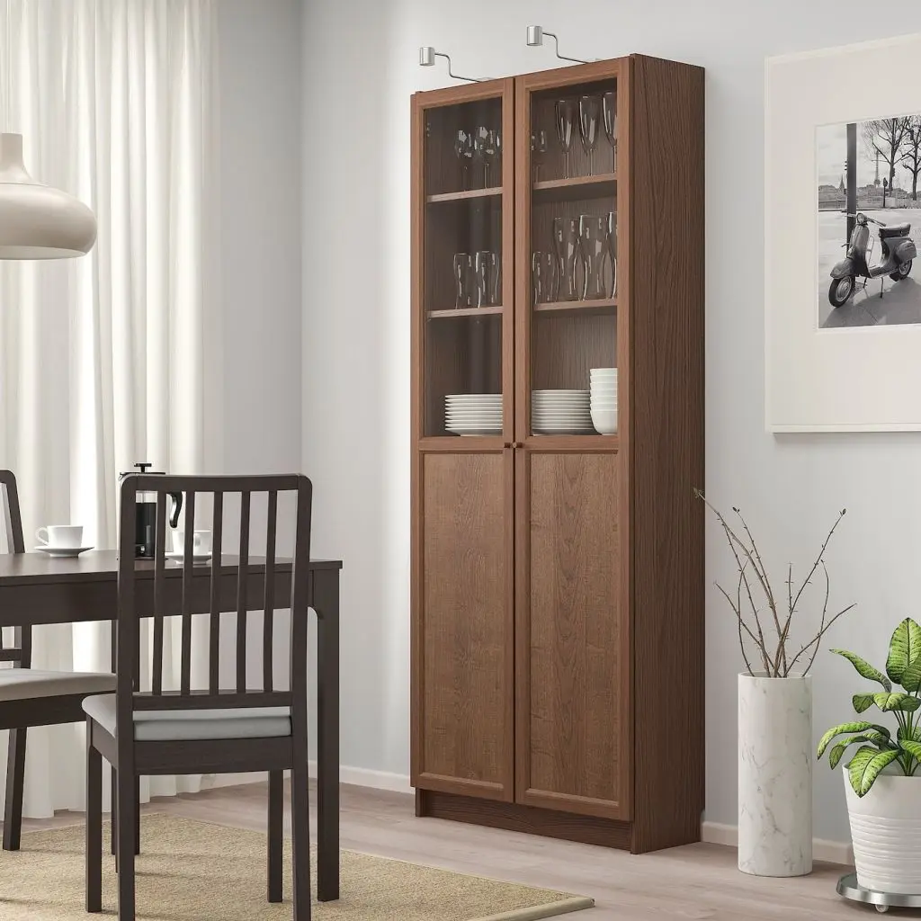 Конструкция петель позволяет отрегулировать и выровнять дверцу по вертикали и по горизонтали. Съемные полки; устанавливайте на разном уровне в соответствии с необходимостью.Дверцы со стеклянной вставкой обеспечивают защиту содержимого от пыли и позволяют Вам продемонстрировать вещи или спрятать их от посторонних глаз.Отделка из шпона. Эту мебель необходимо крепить к стене с помощью прилагаемого стенного крепежа.Будьте осторожны при обращении со стеклом! Из-за поврежденных краев и царапин на поверхности стекло может внезапно треснуть и/или разбиться. Избегайте ударов сбоку, там стекло наиболее уязвимо.Для разных стен требуются различные крепежные приспособления. Подберите подходящие для ваших стен шурупы, дюбели, саморезы и т. п. (не прилагаются).Требуемая мин. высота потолка: 205 см.1 несъемная и 4 съемные полки прилагаются.Для расширения площади хранения дополните верхней полкой БИЛЛИ такой же ширины.Можно установить на угловой модуль, только если полка, находящаяся рядом с ним, без дверец.Дизайнер