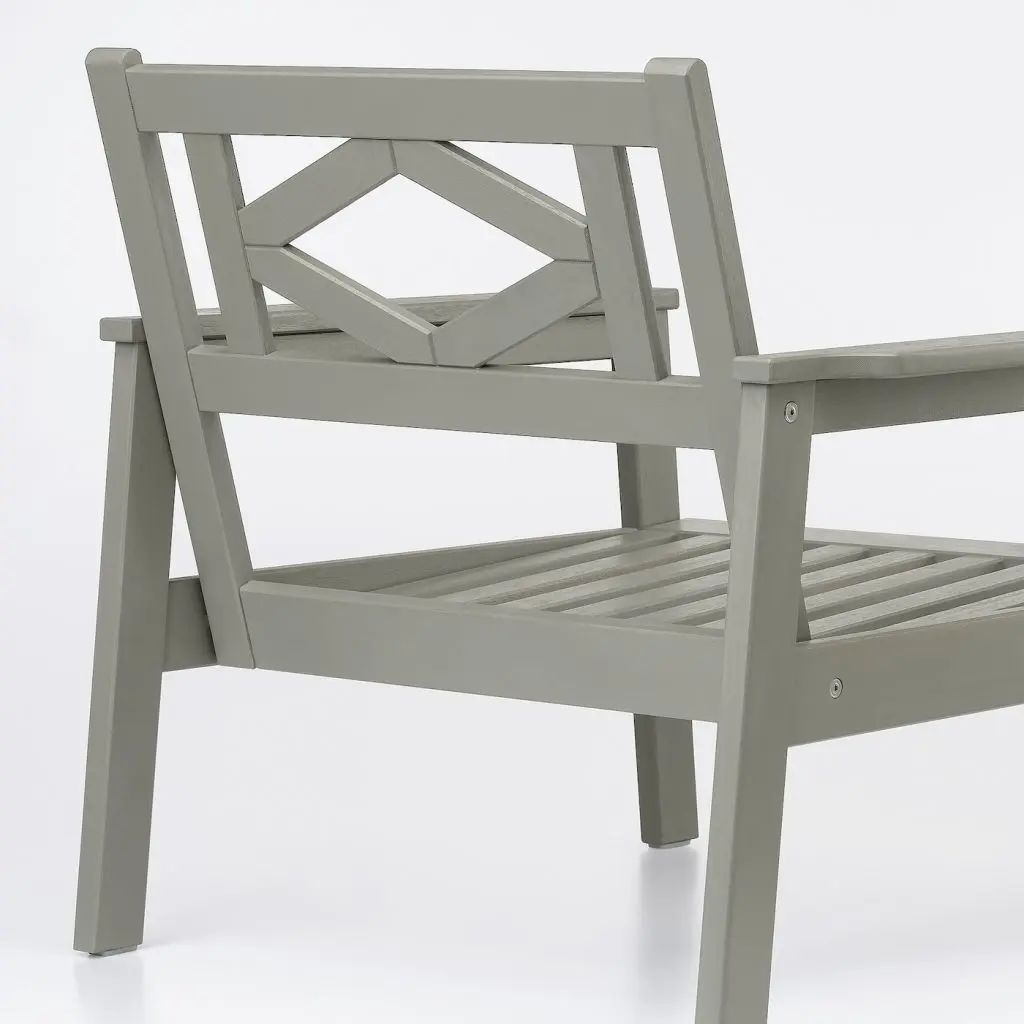 Чтобы сделать это кресло максимально комфортным, мы позаботились о просторном сиденье и удобных подлокотниках.Два кресла можно поставить одно на другое. Для этого кресло, которое будет стоять сверху, нужно перевернуть, чтобы его подлокотники опирались на подлокотники нижнего кресла.Благодаря небольшому бортику подушка не соскальзывает с сиденья.Чехол на подушку с мягкой вставкой, которая обеспечит вам максимальный комфорт.Водоотталкивающий чехол – просто стряхните дождевые капли с подушки.Подушка не скользит благодаря специальным противоскользящим точкам на обратной стороне.Расцветка чехла на подушку сохранит свежесть надолго, так как ткань устойчива к выцветанию.Чехол подушки можно снять и постирать в стиральной машине.Пластиковые ножки защищают мебель от соприкосновения с влажной поверхностью.Изготовлено из древесины эвкалипта, материала высокого качества, поступающего из ответственно управляемы лесных хозяйств.Массив эвкалипта — прочная твердая древесина, которая идеально подходит для садовой мебели. Высокое содержание масел обеспечивает естественную защиту от воздействия атмосферных осадков и ветра, а также предотвращает пересыхание и развитие плесени.Покрытие серой краской в три слоя придает поверхности еще большую прочность для использования на улице и позволяет мебели органично вписаться в окружающее пространство.Дизайнер