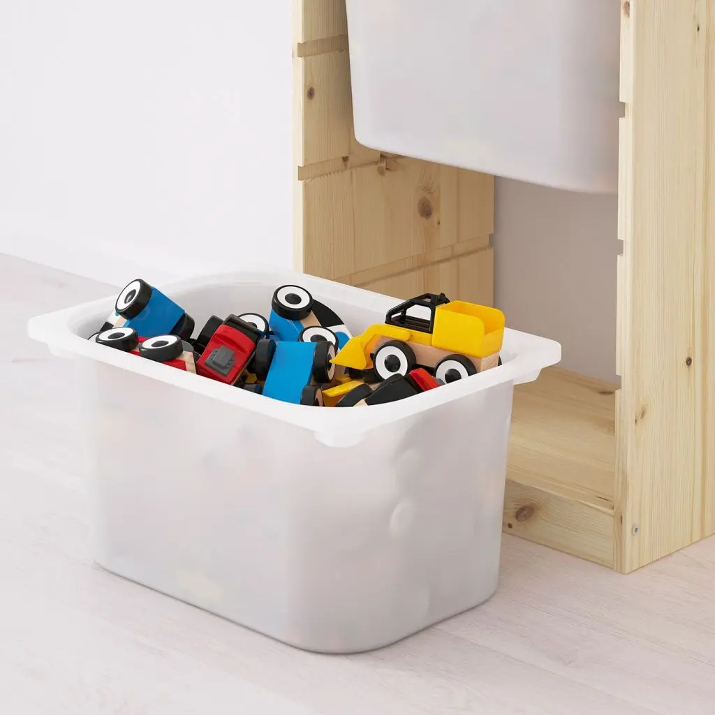 Детям нужно пространство для игр и место для хранения игрушек. Серия деревянной мебели для хранения ТРУФАСТ с легкими пластиковыми контейнерами, которые ребенок сможет легко выдвигать, переносить и убирать обратно.