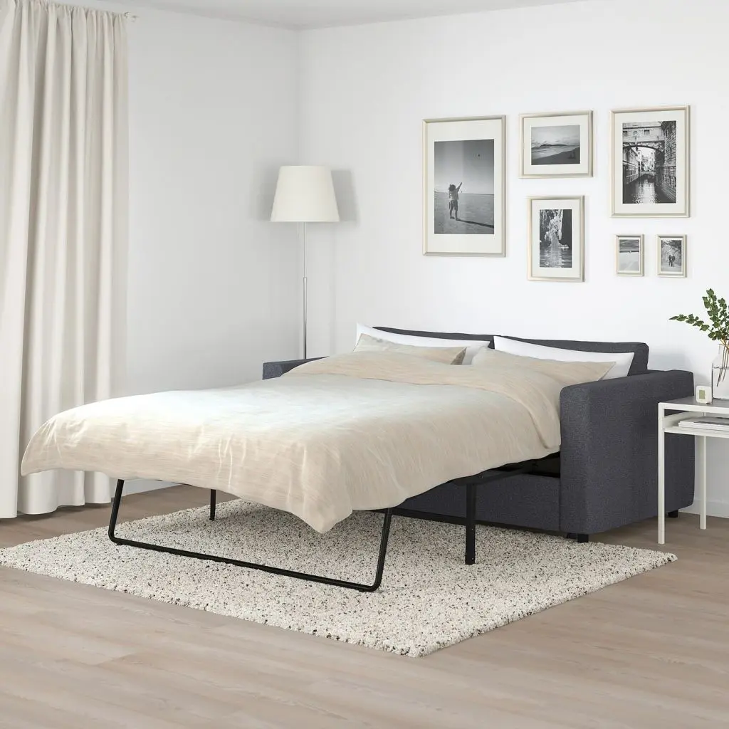 Секции ВИМЛЕ можно по-разному комбинировать, чтобы создать диван, максимально соответствующий вашим потребностям и возможностям помещения. В этой комбинации есть диван-кровать с комфортным высоким матрасом.