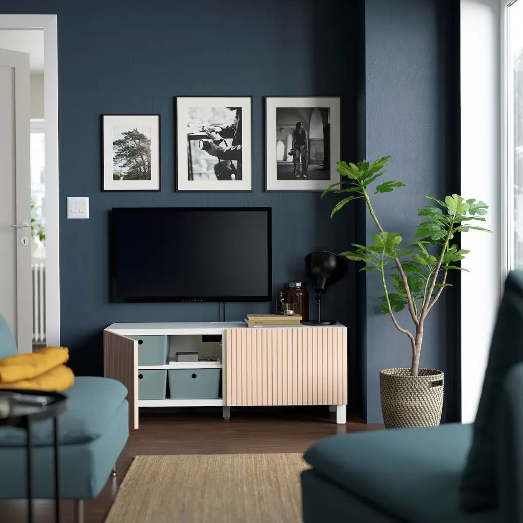 Фасад БЬЁРКЁВИКЕН изготовлен из березового шпона, который придает каждой дверце непревзойденное качество и естественную красоту.Благодаря нескольким отверстиям на задней панели тумбы под ТВ провода от телевизора и других устройств всегда будут под рукой, но не на виду.Дверцы открываются легким нажатием и закрываются плавно и бесшумно благодаря петлям с нажимным механизмом и функции плавного закрывания.Съемные полки позволяют регулировать пространство.Организуйте и оптимизируйте систему для хранения БЕСТО, используя подходящие коробки и вставки.Тумбу под ТВ необходимо крепить к стене с помощью прилагающегося стенного крепежа.Мы рекомендуем, чтобы тумба была немного шире, чем установленный на ней телевизор. Эта тумба подходит для телевизора до 45 дюймов. Вы можете выбрать телевизор большего размера, если он не тяжелее указанной максимальной нагрузки на верхнюю панель тумбы.Верхняя панель этой тумбы предназначена для телевизора весом макс. 50 кг.Если вы выберете функцию плавного закрывания, рекомендуем дополнить фасады ручками, чтобы открывать ящики/шкафы было удобнее.2 регулируемые по высоте полки прилагаются.