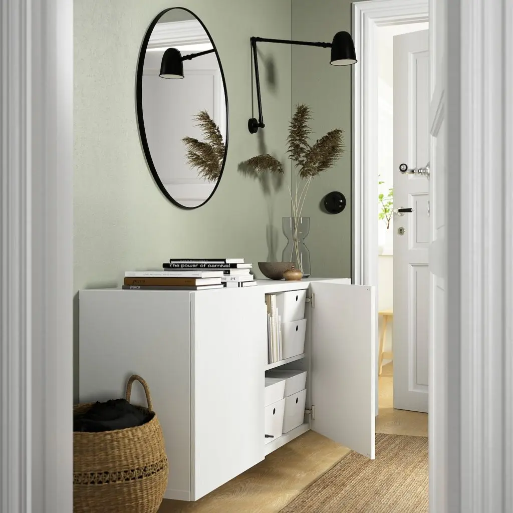 Настенное крепление придает тумбе лаконичный современный вид и облегчает уборку пола.Съемные полки позволяют регулировать внутреннее пространство в соответствии с потребностями хранения.Конструкция петель позволяет отрегулировать и выровнять дверцу по вертикали и по горизонтали. Дверцы защищают содержимое и выполняют декоративную функцию. Выберите дверцы, подходящие к интерьеру Вашего дома.Организуйте и оптимизируйте систему для хранения БЕСТО, используя подходящие коробки и вставки.Эта комбинация состоит из нескольких частей. Используйте верхнюю панель БЕСТО, чтобы закрыть соединения между каркасами. Продается отдельно.Если вы выберете функцию плавного закрывания, рекомендуем дополнить фасады ручками, чтобы открывать ящики/шкафы было удобнее.Накладная шина БЕСТО для фиксации к стене прилагается.Максимальная нагрузка на подвесной шкаф зависит от материала стены.Для разных стен требуются различные крепежные приспособления. Подберите подходящие для ваших стен шурупы, дюбели, саморезы и т. п. (не прилагаются).