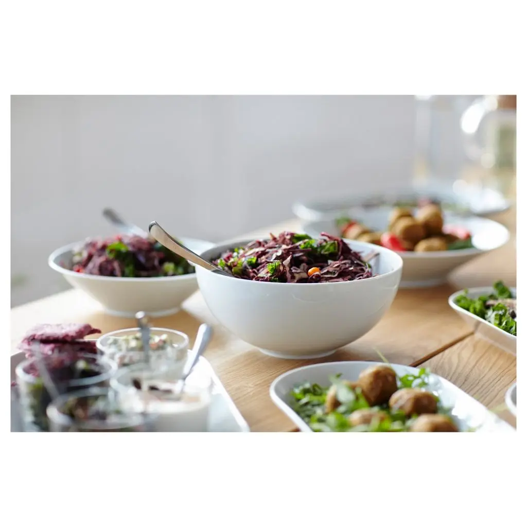 Миска изготовлена из прочного полевошпатного фарфора.Эту практичную миску можно использовать для подачи блюд на стол, а также – в качестве столовой посуды.Эта практичная столовая посуда классического дизайна подойдет для ежедневного использования и сервировки любых блюд и напитков.Практичный дизайн этой столовой посуды позволяет ставить предметы меньшего размера в большие, что обеспечивает компактное хранение.Вымойте изделие перед первым использованием.Дизайнер