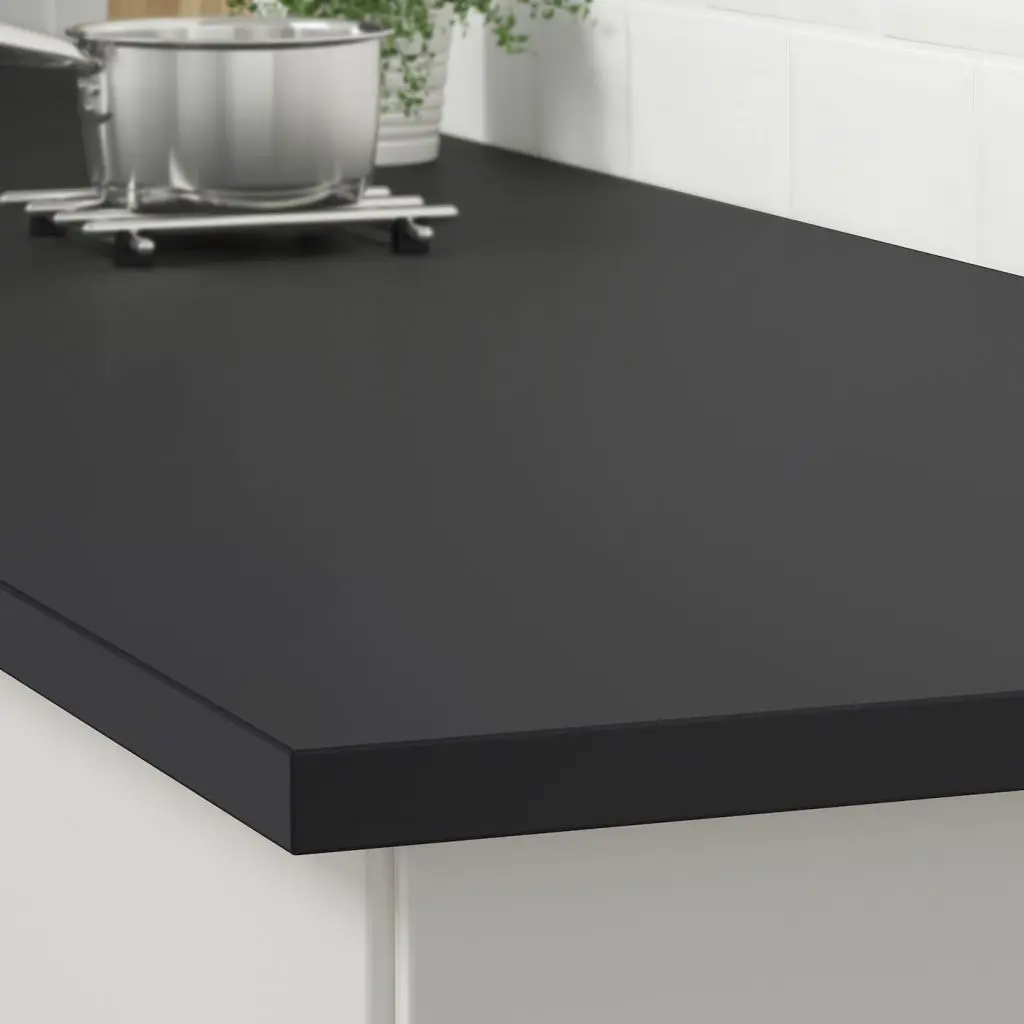 Матовая черная отделка придает столешнице элегантный вид.Легко поддерживать в чистоте, так как столешница обладает водоотталкивающими свойствами, на ней незаметны отпечатки пальцев.Создайте гармоничное решение, дополнив столешницу подходящей настенной панелью.Столешницу можно укоротить до нужной длины. 2 окантовки, чтобы закрыть срезы, прилагаются.Бесплатно 25 лет гарантии. Подробнее об условиях гарантии – в гарантийной брошюре.Ламинат – прочный материал, тем не менее не следует ставить горячие кастрюли и сковороды на столешницу без подставки под горячее.Обязательно пользуйтесь разделочной доской, не режьте продукты непосредственно на столешнице. Предметы с острыми или неровными краями могут повредить поверхность.Небольшие царапины и отметины можно удалить меламиновой губкой.Дизайнер