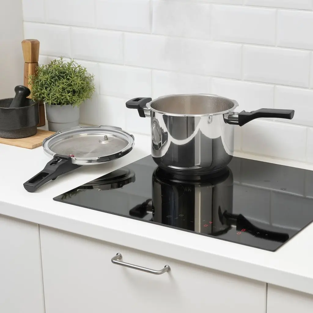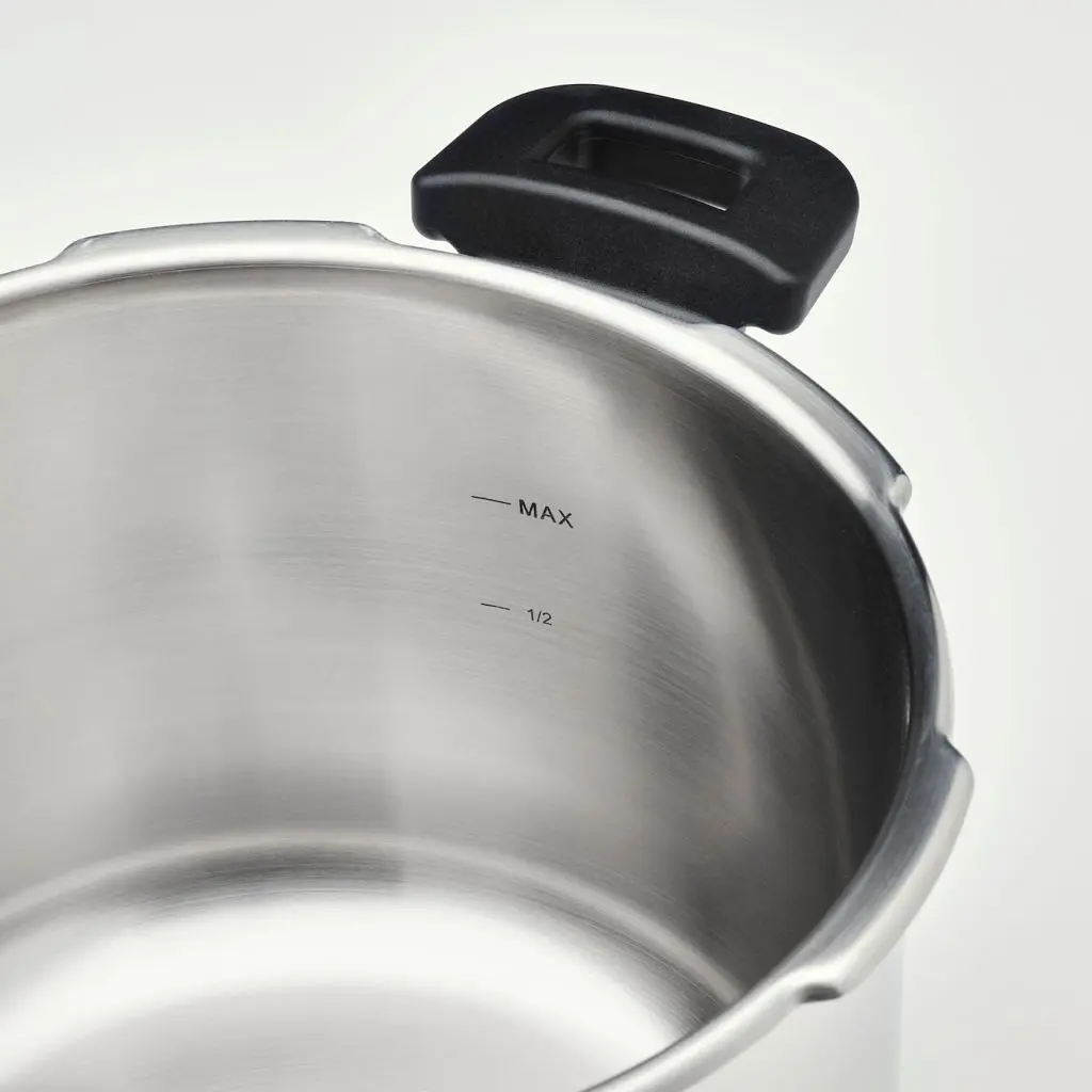 Скороварка проста и безопасна в использовании, так как регулятор давления поддерживает заданное давление и сигнализирует в случае его сильного повышения.В скороварке пища готовится почти на 50 процентов быстрее, что позволяет экономить время и энергию.Регулятор давления, предохранительное отверстие и предохранительный клапан обеспечивают безопасность использования скороварки, так как через них может выходить пар, если давление в скороварке будет слишком высоким.Регулятор давления имеет два режима, что позволяет выбрать разную скорость приготовления в зависимости от типа блюд: плотное мясное блюдо и легкое овощное.Конструкция скороварки обеспечивает сброс давления и легкое открывание скороварки по окончанию приготовления.Использование скороварки позволяет в готовом блюде сохранить аромат и витамины продукта.Вымойте изделие перед первым использованием.Для замены уплотнительной прокладки обратитесь в отдел ИКЕА Сервис магазина ИКЕА.Дизайнер