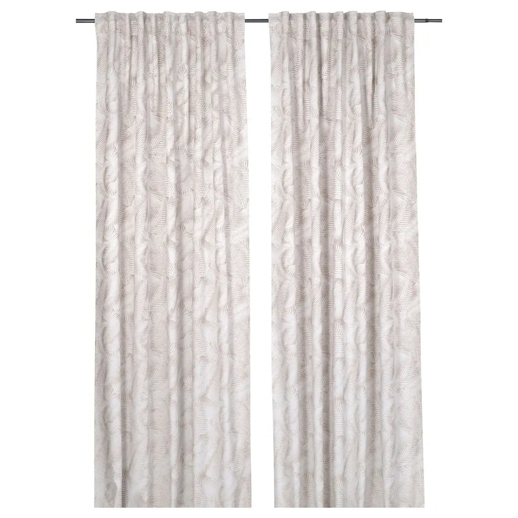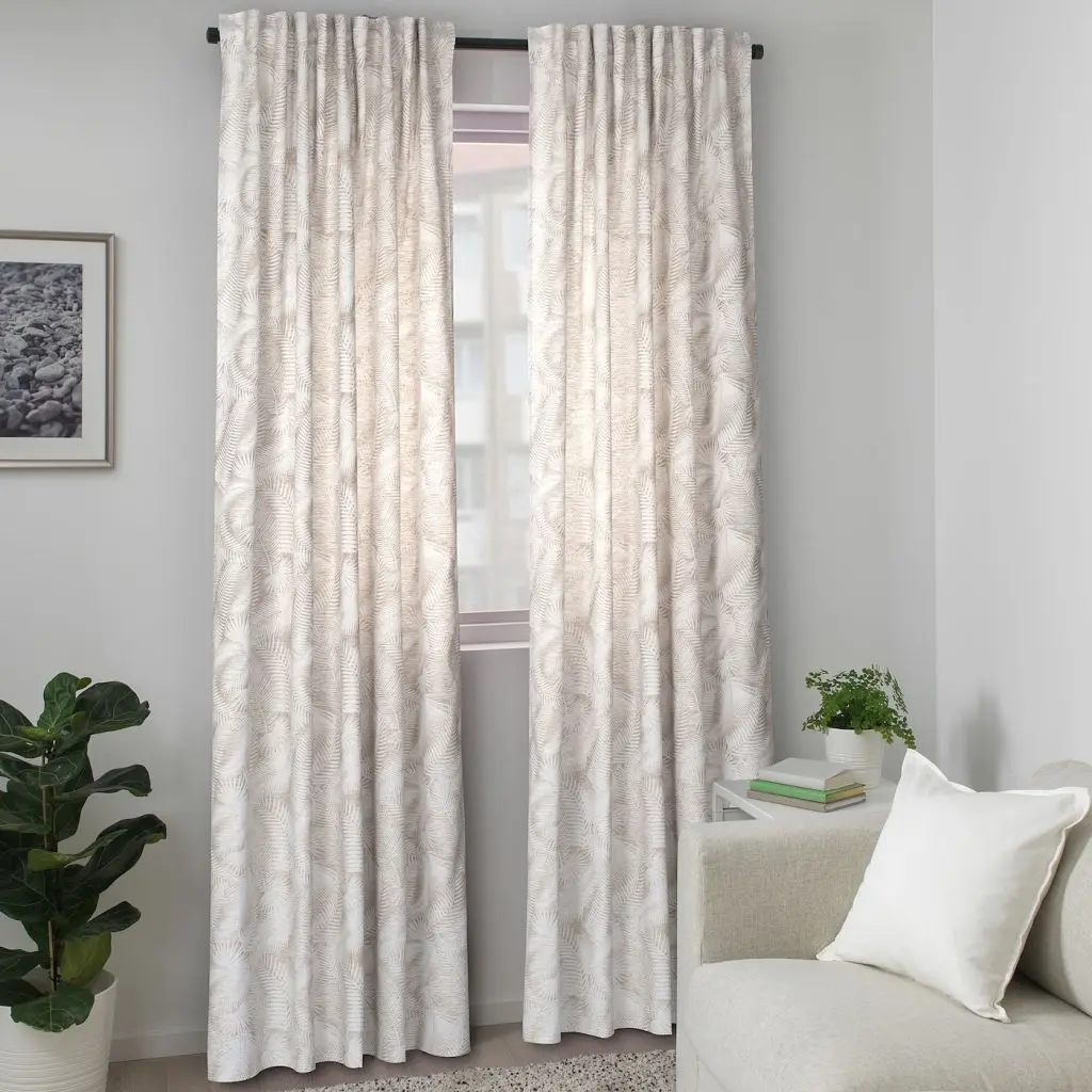 Гардины, 1 пара, естественный, цветочный орнамент, 145x300 см