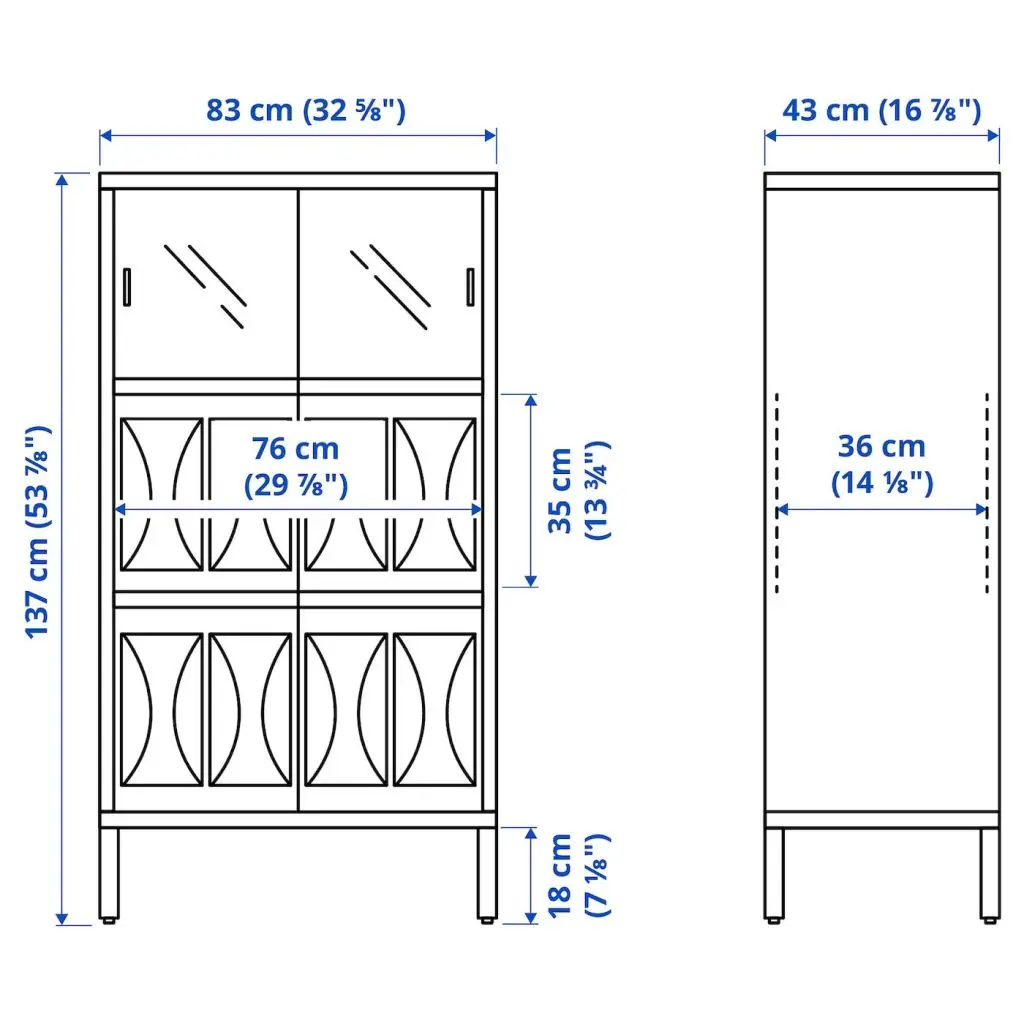 Расставьте предметы декора за стеклянными дверцами, а все ненужное спрячьте за дверцами с тонким рифленым стеклом. Конструкция шкафа КАЛЬКНЭС также позволяет незаметно протянуть провода, чтобы добавить внутреннюю подсветку.
