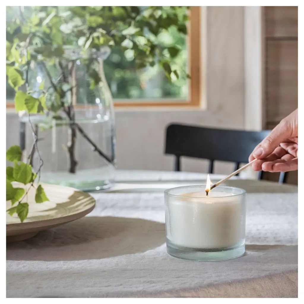 Когда свеча прогорит, стеклянную емкость можно использовать для хранения различных мелочей или в качестве подсвечника для греющей свечи.