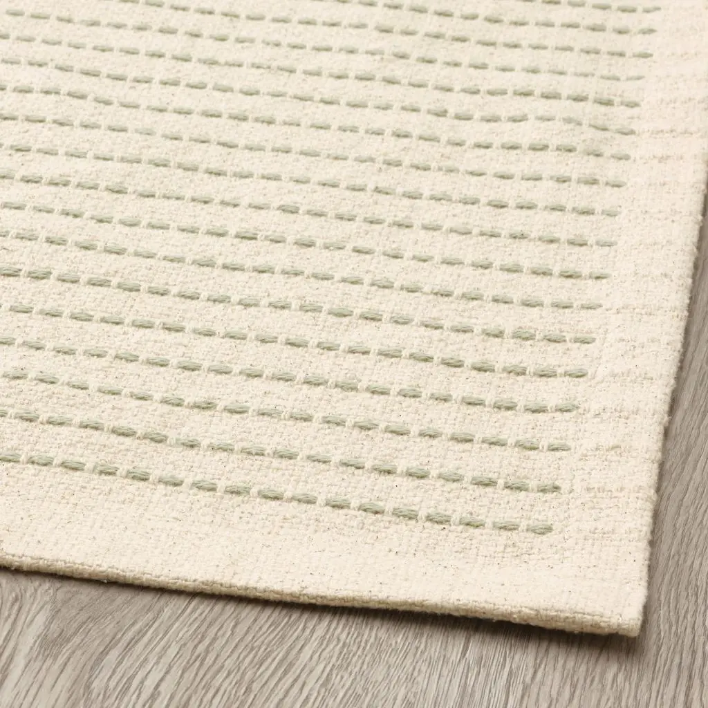Этот ковер в естественных тонах со светло-зелеными полосами никогда не выйдет из моды. Благодаря универсальному дизайну он хорошо сочетается с любой мебелью и текстилем. Одинаково хорош как для гостиной, так и для столовой.