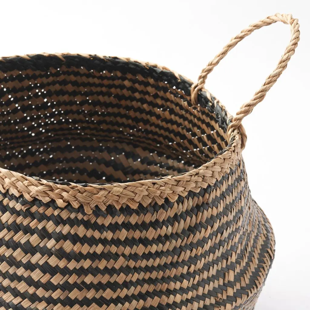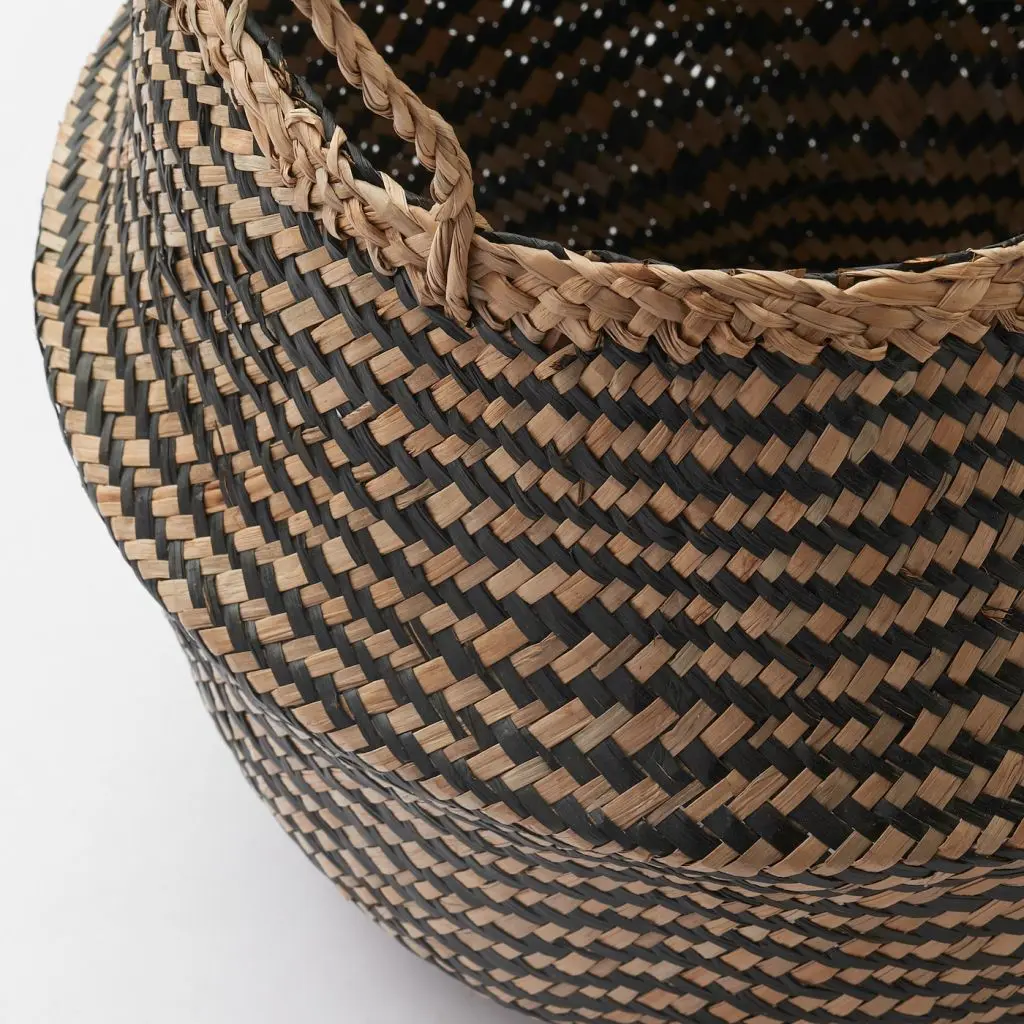 При развернутых ручках верхняя часть этой универсальной корзины скрывает ее содержимое, а при сложенных корзина становится открытой: выбирайте, как вам больше нравится. Изделие сплетено вручную и делает дизайн интерьера аутентичнее и ближе к природе.