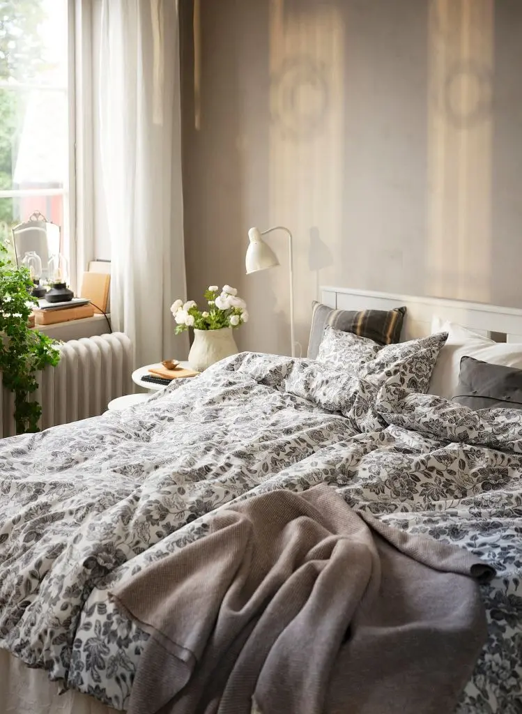Слегка размытый цветочный орнамент в серых тонах смотрится очень живо и объемно. Смесовая ткань из хлопка и вискозы способствует поддержанию комфортного микроклимата в постели в течение всей ночи.