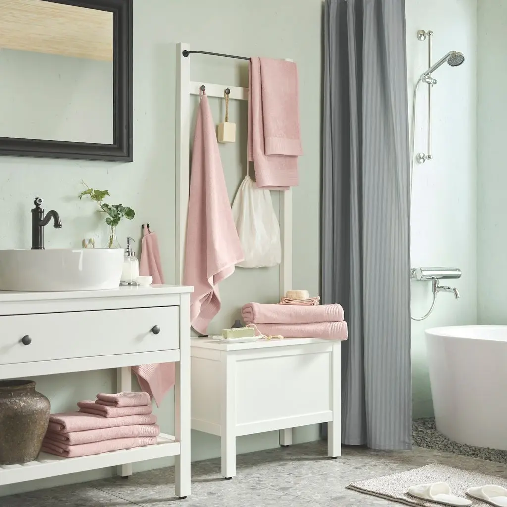 Благодаря смесовой ткани из хлопка и вискозы это мягкое светло-розовое полотенце отлично впитывает влагу. Вафельная окантовка делает его особенно стильным. Идеально сочетается с полотенцами ВАЛЛАСОН.