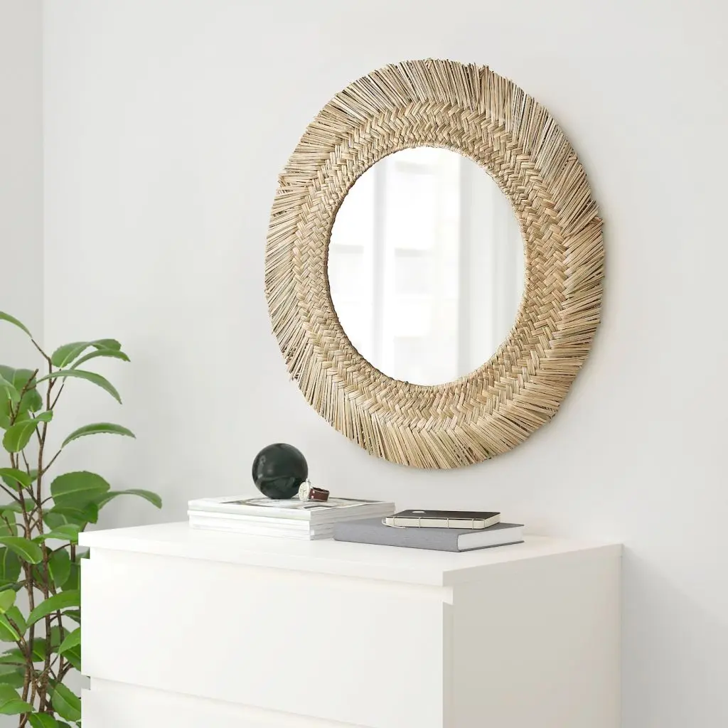 Впустите в дом природу! Это зеркало с рамой ручной работы из плетеной осоки визуально расширит пространство и сделает интерьер ярче. Вы можете повесить одно зеркало или несколько, а также дополнить комбинацию картинами.