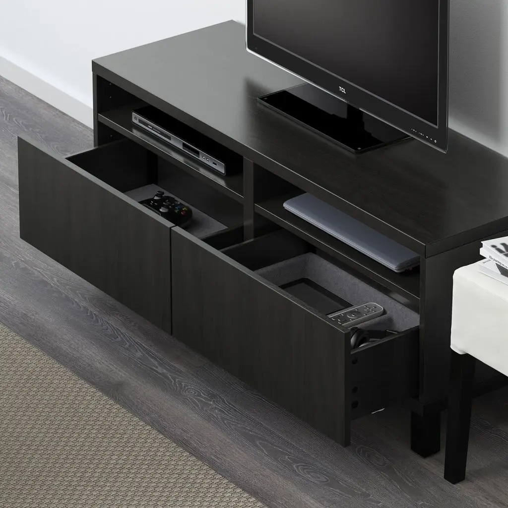 Благодаря доводчикам ящики закрываются плавно и бесшумно.Благодаря нескольким отверстиям на задней панели тумбы под ТВ провода от телевизора и других устройств всегда будут под рукой, но не на виду.Два ящика обеспечат порядок в хранении пультов, игровых приставок и других аксессуаров для ТВ.Ножки придают комбинации БЕСТО более легкий вид, поднимая модули на полом. Кроме того, это упрощает уборку.Специальное отверстие в верхней панели обеспечит удобное и компактное размещение проводов.Эту мебель необходимо крепить к стене с помощью прилагаемого стенного крепежа.Макс. нагрузка на верхнюю панель этой тумбы под ТВ: 50 кг.Для разных стен требуются различные крепежные приспособления. Подберите подходящие для ваших стен шурупы, дюбели, саморезы и т. п. (не прилагаются).Внутренние элементы для организации хранения в модулях БЕСТО продаются отдельно.Если вы выберете функцию плавного закрывания, рекомендуем дополнить фасады ручками, чтобы открывать ящики/шкафы было удобнее.Дизайнер