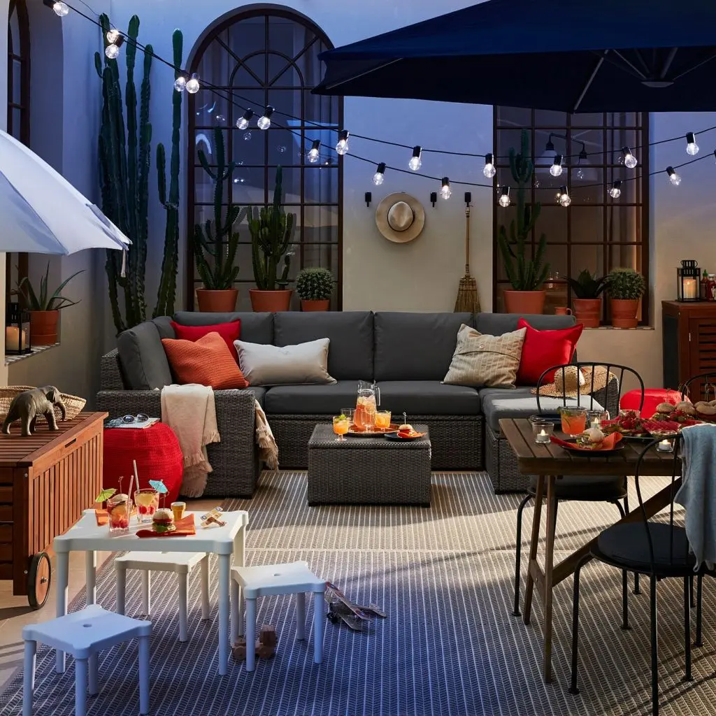 МебельМодульный угл 4-мест диван, садовыйЧтобы продлить срок службы садовой мебели, ее необходимо поддерживать в чистоте и без необходимости не оставлять на открытом воздухе.Уход: используйте мягкий мыльный раствор.Обслуживание: не требует обслуживания.Мебель лучше хранить в сухом прохладном помещении. При хранении на улице используйте водостойкий чехол. После дождя и снегопада рекомендуется удалить влагу и снег с плоских поверхностей. Следует обеспечить циркуляцию воздуха.
