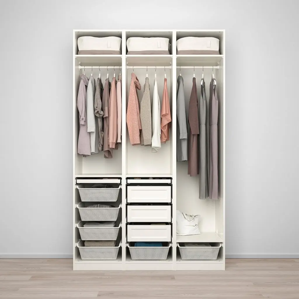 Бесплатно 10 лет гарантии. Подробнее об условиях гарантии – в гарантийной брошюре.Эту комбинацию ПАКС/КОМПЛИМЕНТ можно адаптировать в соответствии с вашими потребностями, воспользовавшись программой для проектирования гардеробов ПАКС.Регулируемые ножки позволяют скорректировать неровности пола.Благодаря петлям с интегрированным доводчиком дверцы закрываются плавно и бесшумно.С помощью программы планирования гардероба ПАКС вы можете легко дополнить свою комбинацию интегрированной подсветкой. После выбора источника освещения программа предложит необходимые аксессуары.Сетчатый материал обеспечивает циркуляцию воздуха. Корзина подходит для хранения сложенной одежды и различных аксессуаров.Эту мебель необходимо крепить к стене с помощью прилагаемого стенного крепежа.Для разных стен требуются различные крепежные приспособления. Подберите подходящие для ваших стен шурупы, дюбели, саморезы и т. п. (не прилагаются).Для сборки этой мебели требуются два человека.Требуемая мин. высота потолка: 244 см. Следуйте инструкциям по сборке в упаковке.Аксессуары для организации хранения в гардеробе продаются отдельно.Ручки продаются отдельно.Для этого товара необходимы петли. Петли включены в стоимость, но продаются в отдельной упаковке.Дизайнер