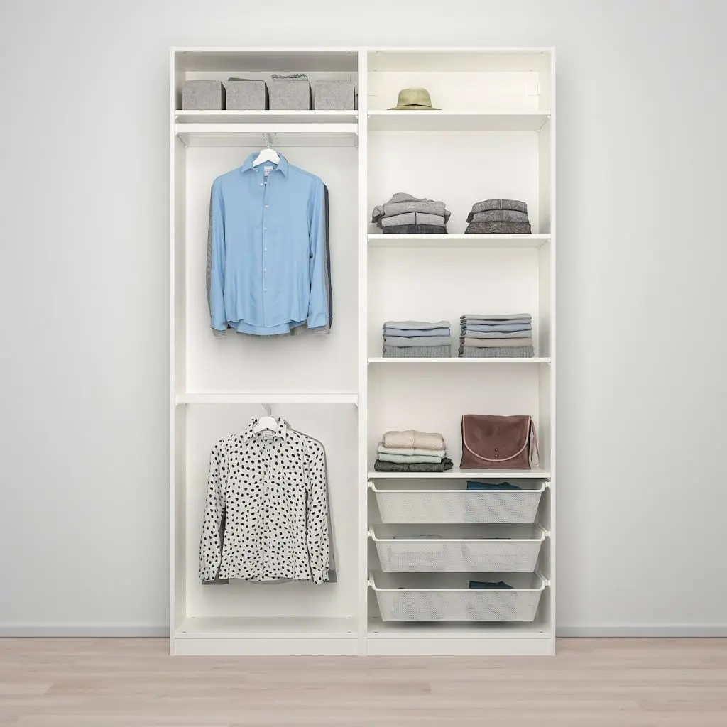 Бесплатно 10 лет гарантии. Подробнее об условиях гарантии – в гарантийной брошюре.Эту комбинацию ПАКС/КОМПЛИМЕНТ можно адаптировать в соответствии с вашими потребностями, воспользовавшись программой для проектирования гардеробов ПАКС.Неглубокий каркас – идеальное решение для небольших помещений.Регулируемые ножки позволяют скорректировать неровности пола.Раздвижные дверцы не требуют места при открывании.Устройство обеспечивает плавное и бесшумное открывание и закрывание дверей.С помощью программы планирования гардероба ПАКС вы можете легко дополнить свою комбинацию интегрированной подсветкой. После выбора источника освещения программа предложит необходимые аксессуары.Сетчатый материал обеспечивает циркуляцию воздуха. Корзина подходит для хранения сложенной одежды и различных аксессуаров.Переверните панели, чтобы изменить внешний вид гардероба. Каждая сторона имеет свою отделку. Используйте один вариант отделки или сочетайте оба в одном решении.Для раздвижных дверей не нужны ручки, что придает дизайну гардероба лаконичный облик, позволяя сочетать его с мебелью в разных стилях.Эту мебель необходимо крепить к стене с помощью прилагаемого стенного крепежа.Для сборки этой мебели требуются два человека.Для разных стен требуются различные крепежные приспособления. Подберите подходящие для ваших стен шурупы, дюбели, саморезы и т. п. (не прилагаются).Требуемая мин. высота потолка: 244 см. Следуйте инструкциям по сборке в упаковке.Аксессуары для организации хранения в гардеробе продаются отдельно.На платяную штангу можно повесить примерно 4 пиджака или 8 рубашек на плечиках.Дизайнер