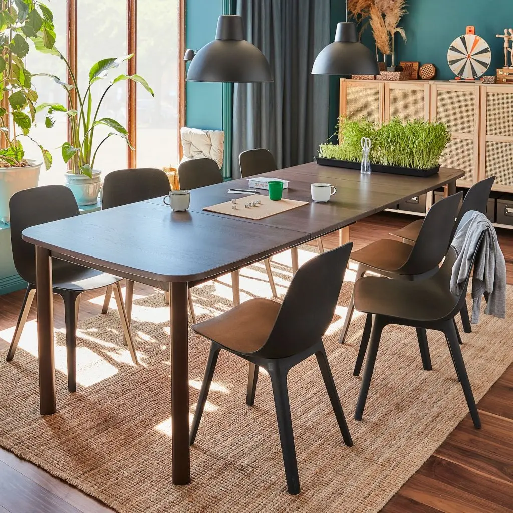 Размер этого стола «3 в 1» легко регулируется на 4, 6 или 8 человек с помощью прилагающихся вкладных досок. А если добавить стульев и по коротким сторонам стола, вы сможете рассадить до 10 гостей.