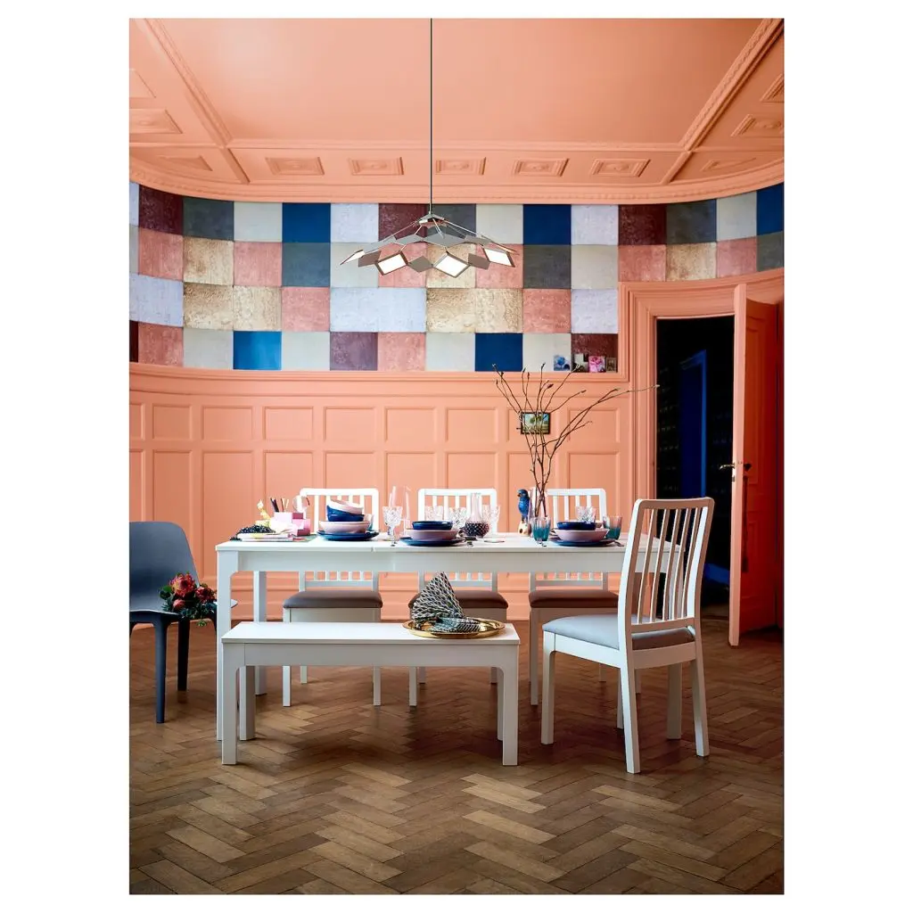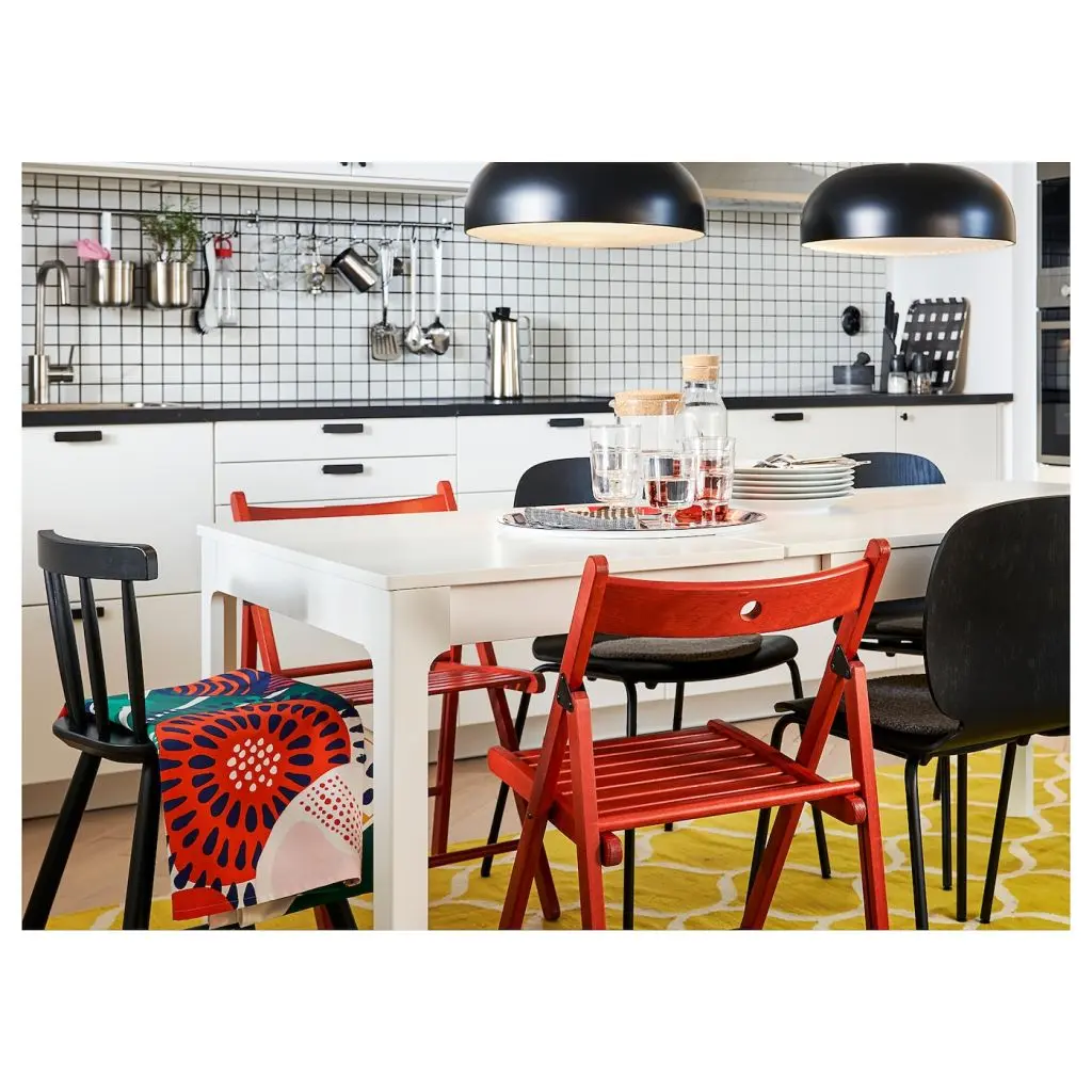 Когда стол не разложен, на поверхности столешницы нет никаких швов.Вы можете легко регулировать размер стола в зависимости от планируемых занятий: рисование, выполнение домашнего задания или настольные игры.Ножки всегда находятся по углам стола, даже когда он раздвинут, что обеспечивает достаточно места для стульев.1 человек может легко и быстро разложить стол перед приходом гостей.Вкладную доску удобно хранить под столешницей.Каждый стол уникален – благодаря естественному рисунку натуральной древесины и вариативности ее оттенков.Можно дополнить стульями и скамьями этой серии или другими стульями из ассортимента ИКЕА.Стол протестирован в соответствии с нашими строгими стандартами прочности, устойчивости и безопасности, чтобы долгие годы выдерживать все испытания повседневного использования.На 4-6 человек.Рекомендуется использовать только в помещении.1 вкладная доска прилагается.Для обеспечения максимального качества при необходимости подтягивайте шурупы.Дизайнер