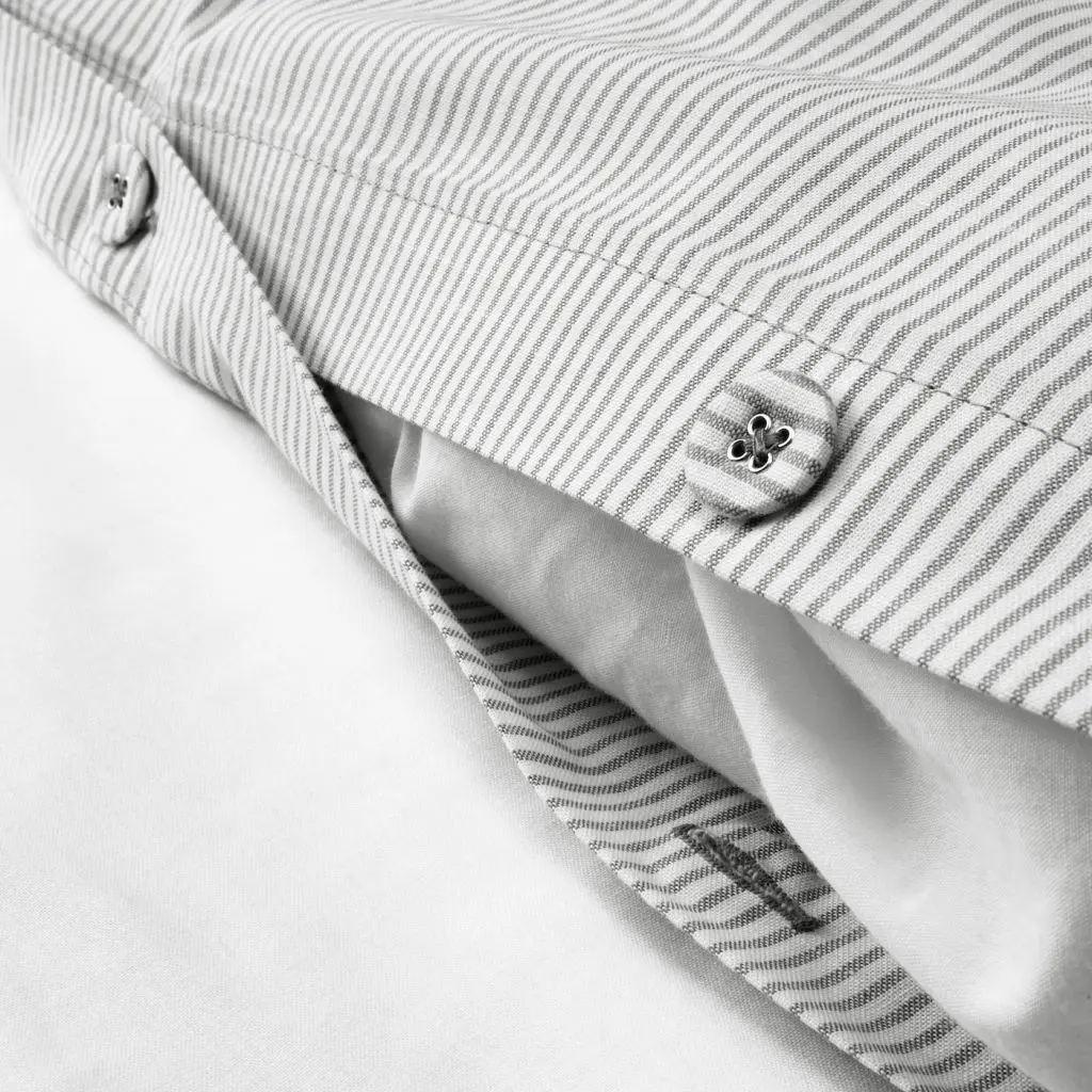 Окрашено в пряже; пряжа красится перед переплетением; придает постельному белью мягкость.100%-й хлопок — натуральный прочный материал, который становится мягче с каждой стиркой.Пододеяльник с декоративными пуговицами – одеяло не будет выбиваться.Количество нитей на кв. дюйм: 118.Чем выше количество нитей на квадратный дюйм, тем прочнее и плотнее ткань.Наволочка с клапаном.Дизайнер