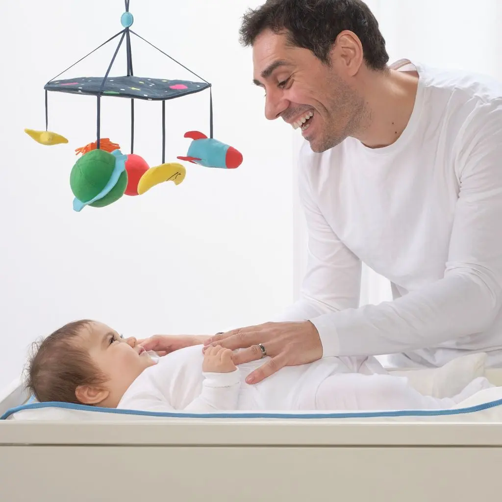 Чехол из хлопка и полиэстера – мягкая и комфортная ткань, которая приятна на ощупь.Прочная, мягкая и гладкая поверхность. Материалы не содержат фталатов или других химикатов, которые могут быть вредны для здоровья ребенка. Безопасно для малыша — безопасно для экологии.Съемный чехол можно стирать в стиральной машине.Рекомендовано для детей от 0 лет.Дизайнер