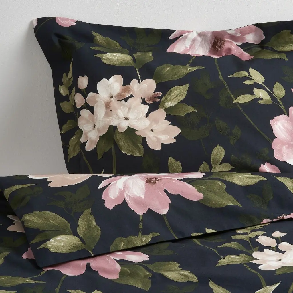 Пододеяльник и 1 наволочка, черный, цветок, 150x200/50x70 см