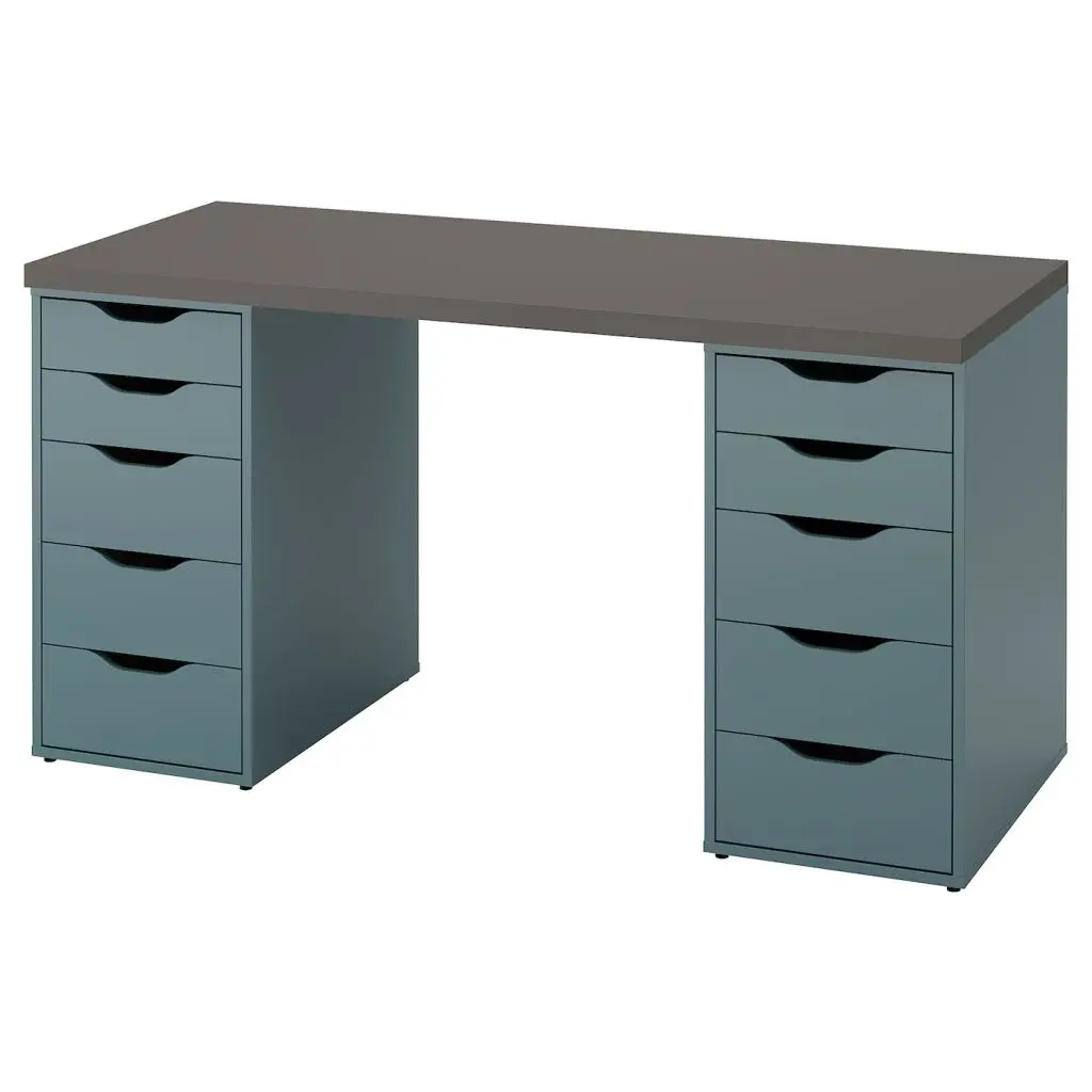Комбинация для хранения с ящиками, белый КЭЛЛЬВИКЕН/светло-серый под бетон, 180x42x74 см