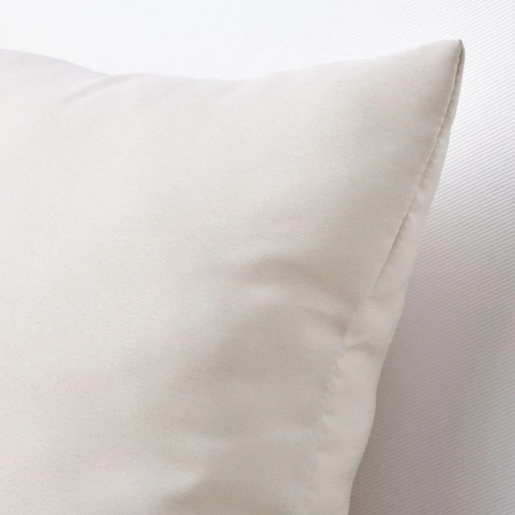 Мягкая подушка из светло-бежевой меланжевой ткани с нежным блеском. Комбинируйте с подушками других расцветок и размеров, чтобы обновить внешний вид дивана или кровати. На 100 % изготовлено из переработанного полиэстера.
