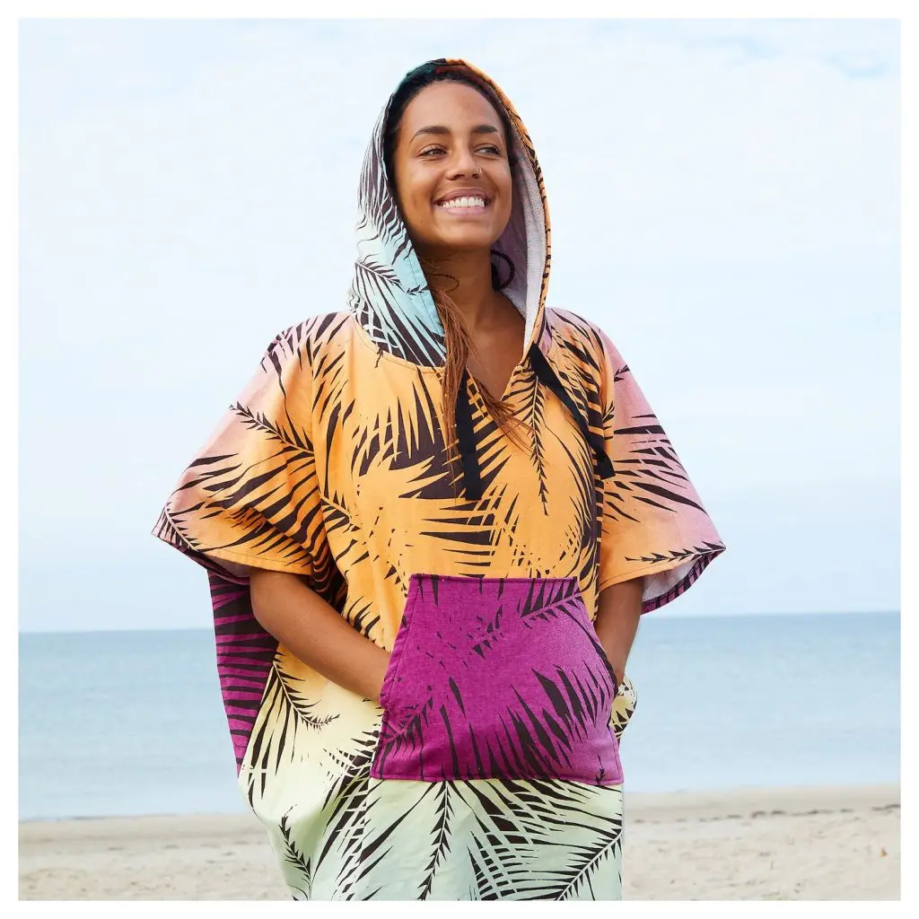 Укутайтесь в уютное махровое полотенце-пончо: оно быстро согреет вас после освежающего душа, купания или серфинга.