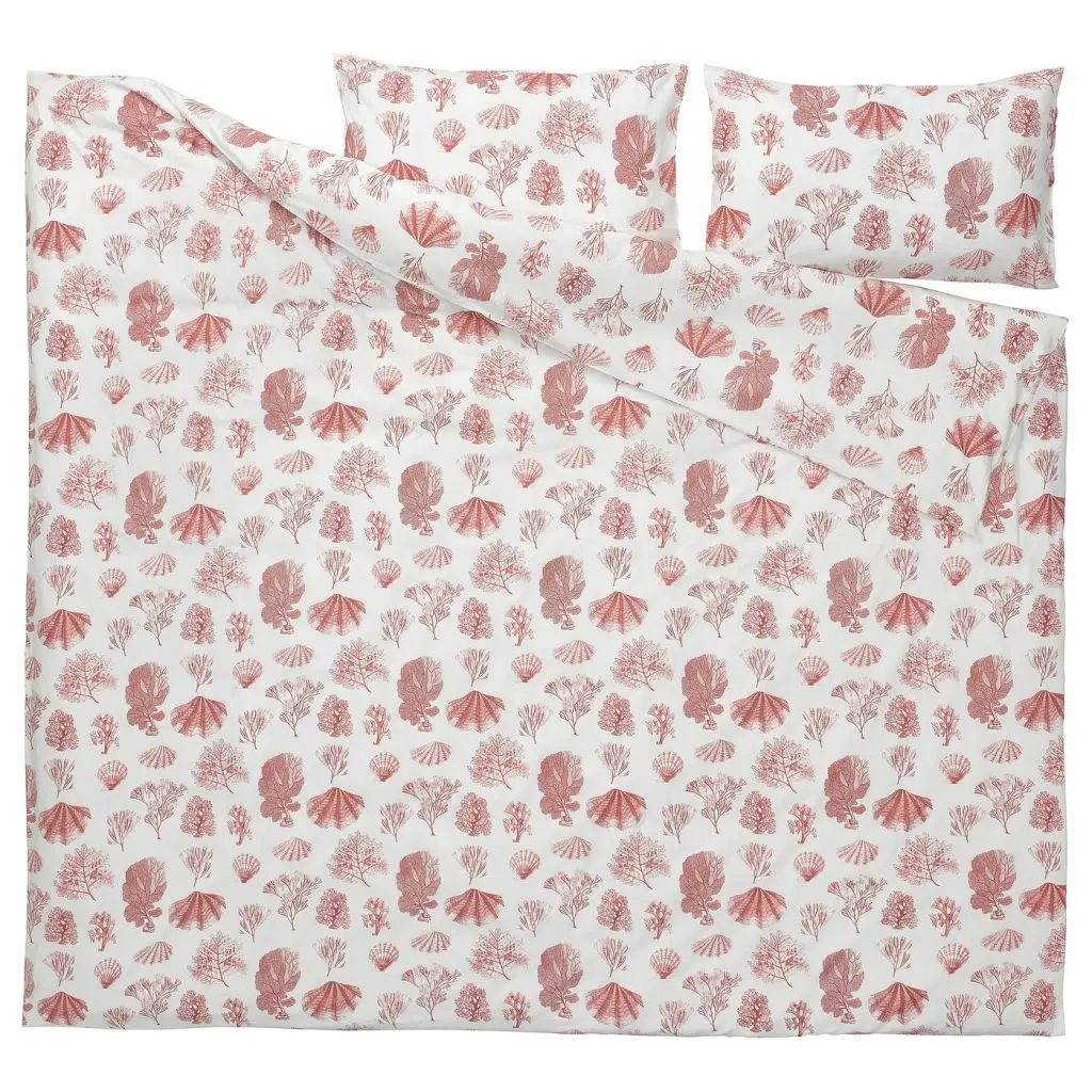 Пододеяльник и 2 наволочки, белый/розовый, 200x200/50x70 см