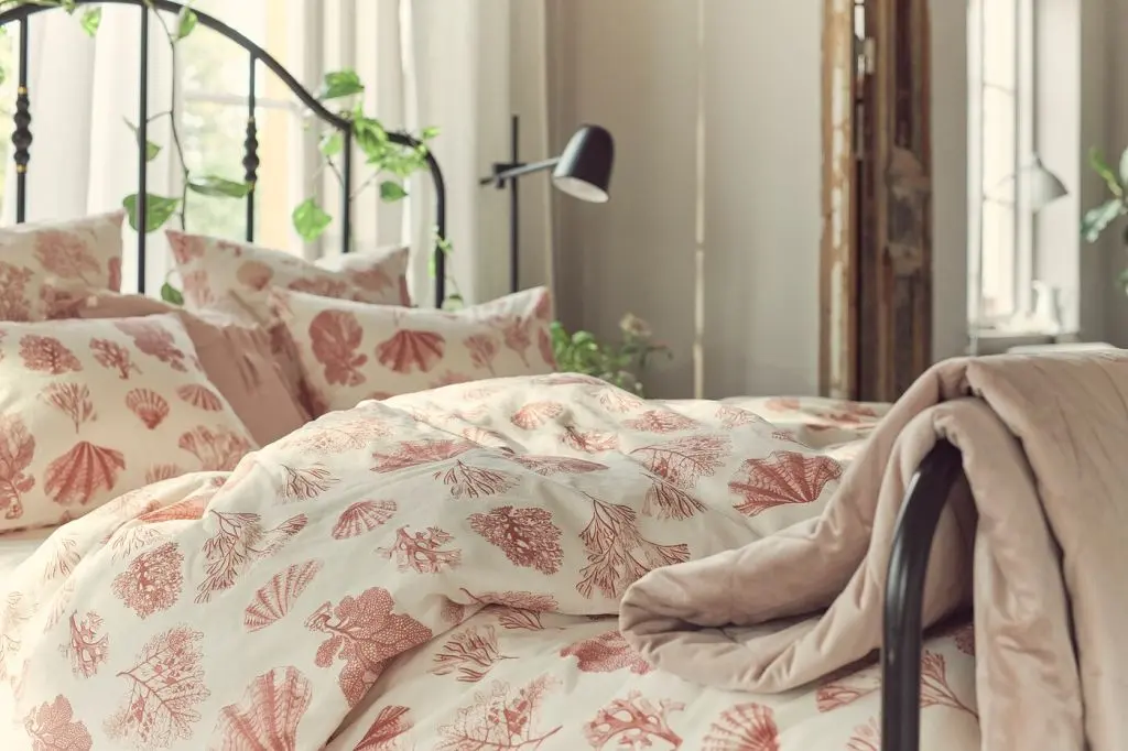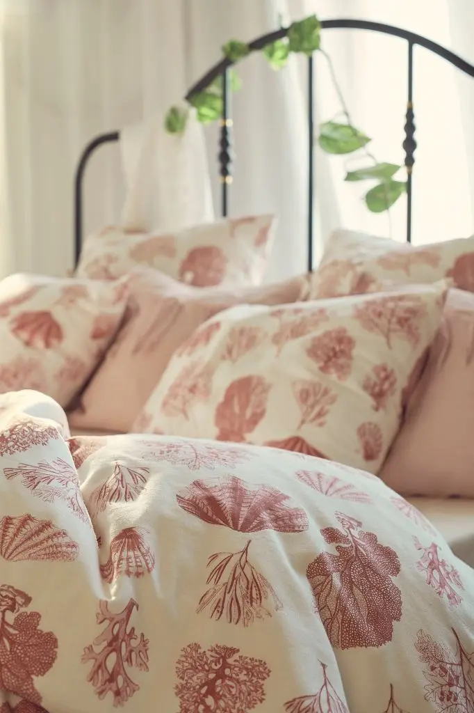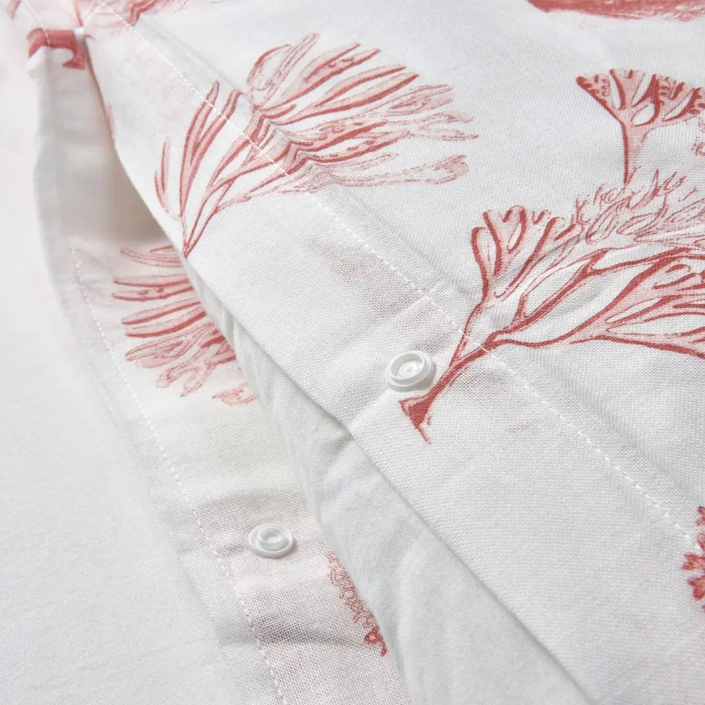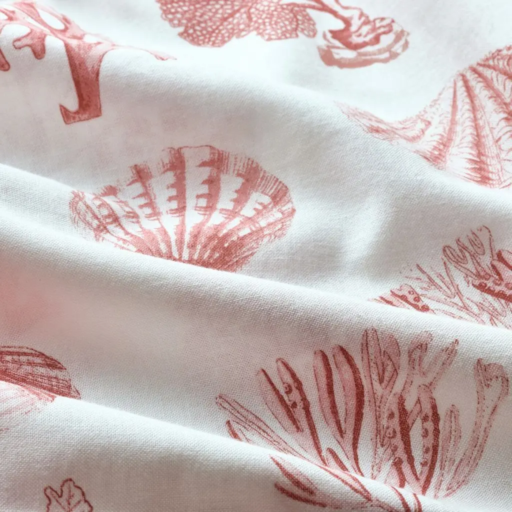 Постельное белье с орнаментом в виде кораллов, раковин и водорослей задаст морскую тему в оформлении интерьера. Ткань изготовлена из мягкого, «дышащего» и приятного на ощупь хлопка.