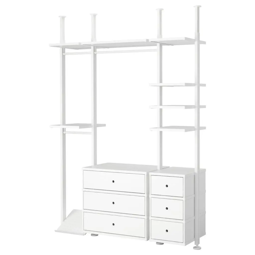 Высота регулируется 222–350 см, что позволяет максимально использовать всю высоту помещения.Одна платяная штанга 40 см вмещает приблизительно 10–12 рубашек на плечиках.Одна платяная штанга 80 см вмещает приблизительно 24–26 рубашек на плечиках.Один ящик шириной 40 см вмещает приблизительно 5 пар брюк в сложенном виде или 8 футболок.Один ящик шириной 80 см вмещает приблизительно 10 пар брюк в сложенном виде обуви или 24 футболки.Одна полка шириной 40 см вмещает 2 пары обуви.К каждой стойке прилагаются два крепления, чтобы вы могли установить элементы для хранения на выдвижной части стойки, используя всю ее высоту.Эту мебель необходимо крепить к потолку.Для разных материалов потолка необходимы различные крепления. Используйте крепления (не прилагаются), которые подходят для потолка в Вашем доме.Для сборки этой мебели требуются два человека.Дизайнер