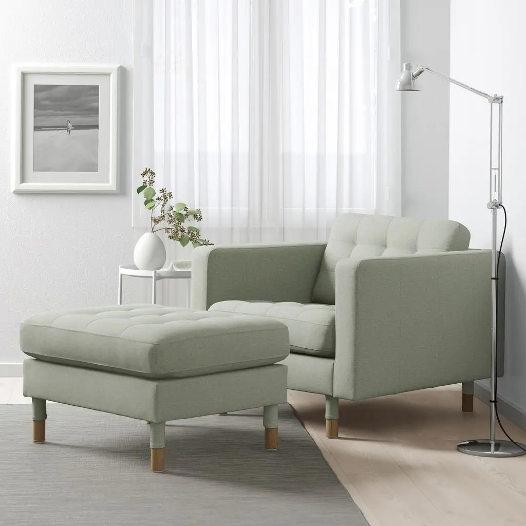 Плотно облегающая тканевая обивка выглядит привлекательно и создает уют, а благодаря стеганой отделке кресло смотрится особенно стильно.Бесплатно 10 лет гарантии. Подробнее об условиях гарантии – в гарантийной брошюре.Подушки сиденья с наполнителем из высокоэластичного пенополиуретана и ваты из полиэстерного волокна обеспечивают особый комфорт.Чехол имеет уровень светостойкости (способность противостоять выцветанию) 5–6 по шкале от 1 до 8. В соответствии с отраслевыми стандартами материал с уровнем светостойкости 4 или выше подходит для домашнего использования.Износостойкость чехла подтверждена 50000 циклов воздействия истиранием. Способность выдержать 15000 циклов и более считается нормой для мебели для бытового использования. Показатель более 30000 циклов означает высокую устойчивость материала к истиранию.Чехлы на ножки соответствующие чехлу прилагаются.Обивка.Дизайнер