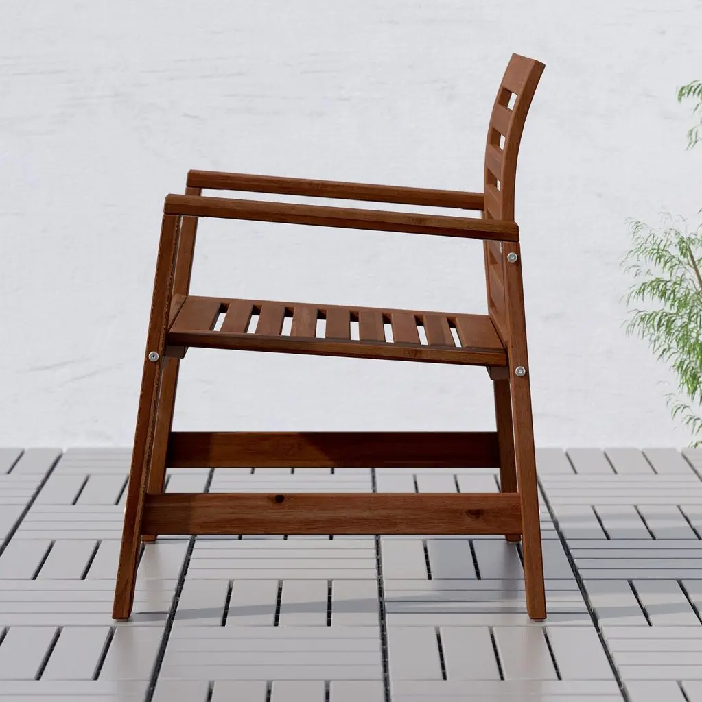 Мебель изготовлена из акации – натурального и прочного материала высокой плотности.Мебель обработана полупрозрачной морилкой в несколько слоев. Это повышает ее прочность и подчеркивает выразительность натуральной фактуры дерева.Чехол на подушку с мягкой вставкой, которая обеспечит вам максимальный комфорт.Водоотталкивающий чехол – просто стряхните дождевые капли с подушки.Расцветка чехла на подушку сохранит свежесть надолго, так как ткань устойчива к выцветанию.Подушка не скользит благодаря специальным противоскользящим точкам на обратной стороне.Чехол подушки можно снять и постирать в стиральной машине.Дизайнер